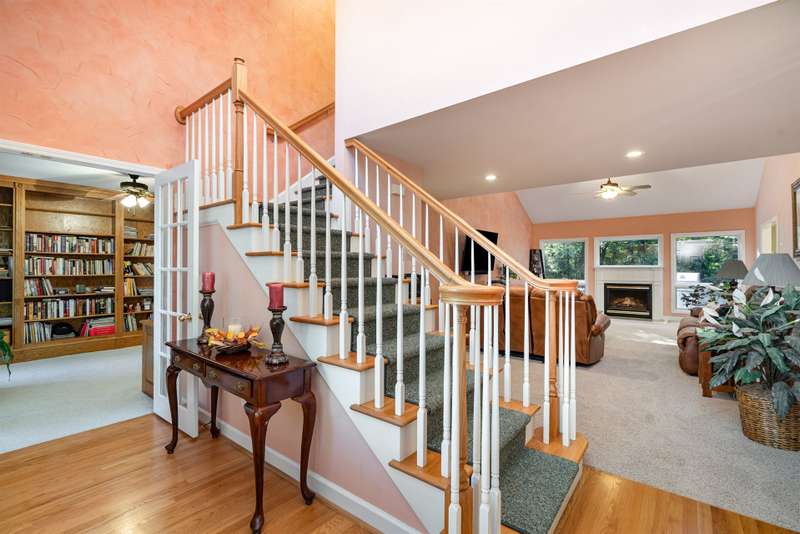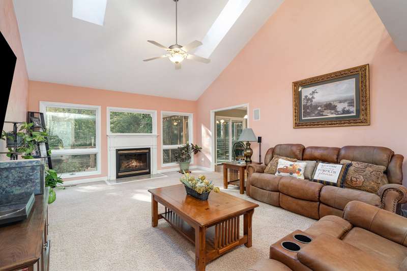 Lovely Catawba Springs home with so many special features, it's hard to know which one you will love more. Before you enter, sit in the southern front porch swing and admire your view of Catawba Springs golf course past your lush landscaping. A warm library-office greets you off the foyer with marvelous custom wood shelving. The vaulted great room with gas fireplace and wall of windows provides expansive living space. Formal dining and breakfast rooms flow seamlessly from the updated chef's kitchen. Stainless appliances, thick granite, designer sink, under counter lighting, and 2 full walls of cabinets and counters make this an inviting space to cook and gather. The private owner's suite offers a peaceful view of the backyard, plus an oversize standing shower, dual sink vanity and 2 closets. Upstairs there are two huge bedrooms, each with 2 closets and a lovely Cape Cod window space. The upstairs bath includes a true full size soaking tub. Your oasis backyard is highlighted by the 20 x 12 screen porch, adjacent 16 x 12 deck, natural gas grill hook up, oversized fire pit stone seating area, and babbling creek. Don't miss the conditioned crawl space with amazing storage and wine cabinet for your special bottles. Even the garage is special with over 500 square feet for parking and a 24 x 12 workshop behind with wall heater. We hope you love it all and decide to make this home yours.