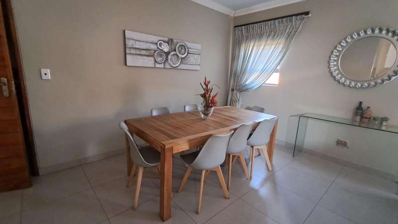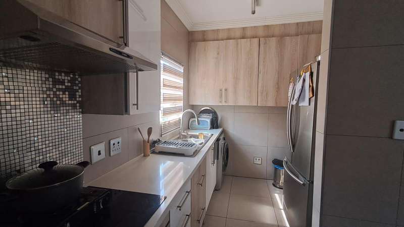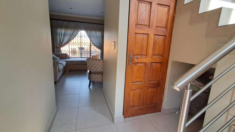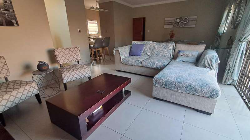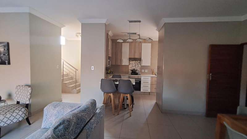 Double storey cluster home in the heart of Raceview. Move in, lock up and go with added security in a small complex. Downstairs are the open plan lounge, dining area. Lovely kitchen with granite tops and breakfast counter. Upstairs are the three spacious bedrooms and two full bathrooms that include shower cubicles. The main bedroom has a dressing area. From the main bedroom step out to the outside open patio. At the back from the lounge is the open patio and the garden. A double, automated garage with built in cupboards. Contact me for a viewing appointment.
