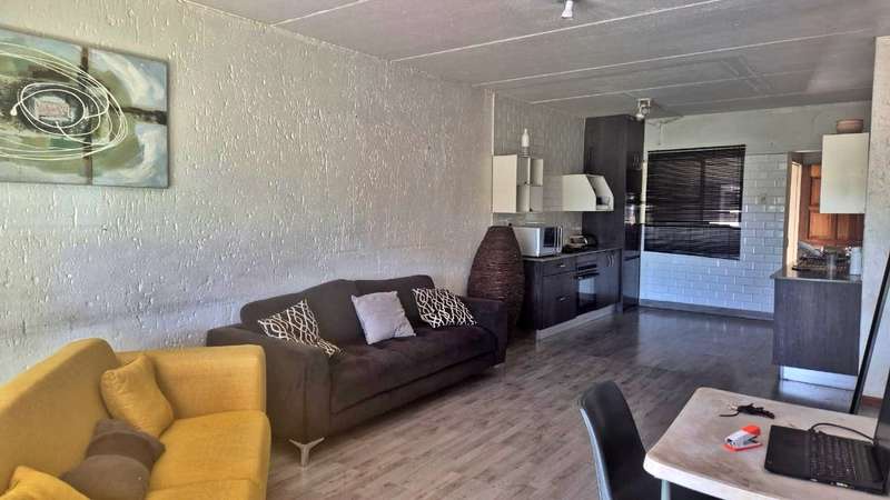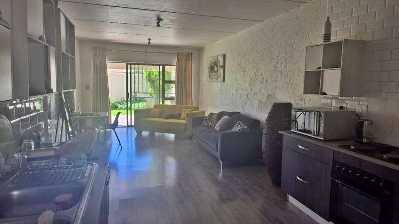 This Charming 2 Bedroom, Open Plan Kitchen, Kitchen, Lounge, Patio, Bathroom, Private Garden, Lockable Garage and lots of Visitors Parking. This beautiful Kitchen is equipped with Granite Tops, Cupboard Space, Space for Fridge and Washing Machine. You will love the Open Planning setup, that allows the Kitchen and Lounge flowing nicely right into the Patio. Property is in an immaculate condition laminated Floors, Modern Kitchen and Bathroom. Well located close to all amenities, 5 minute drive to the Mall of Africa and the highway. 24 Hours Security and Response, CCTV Camera, Secure and safe. Contact Bobby for all your viewing requests