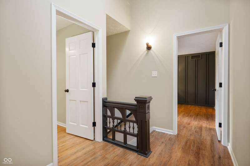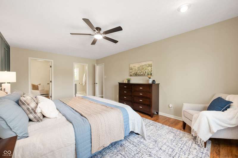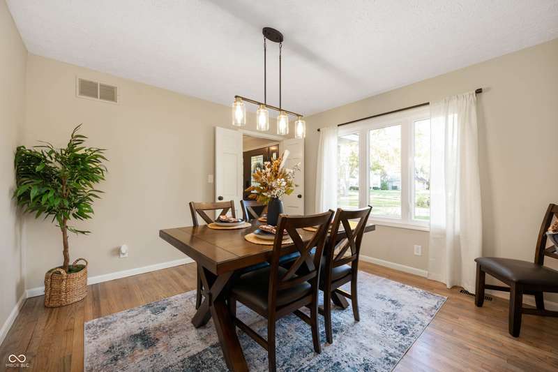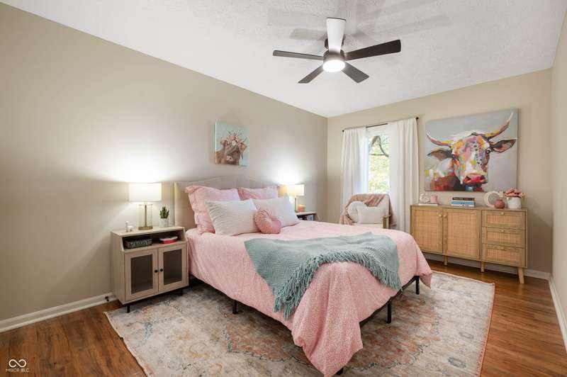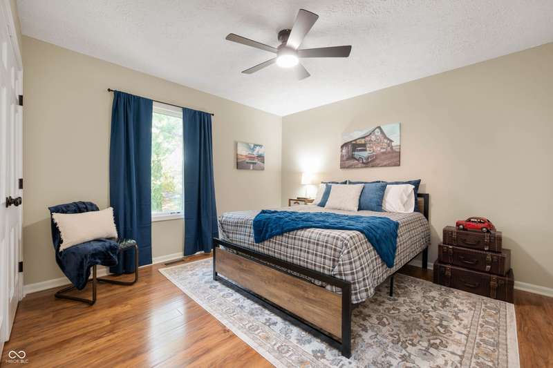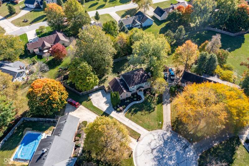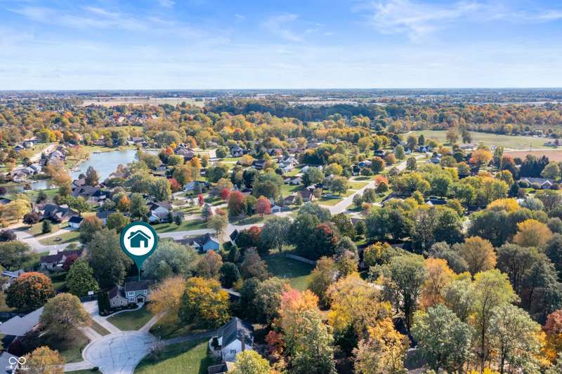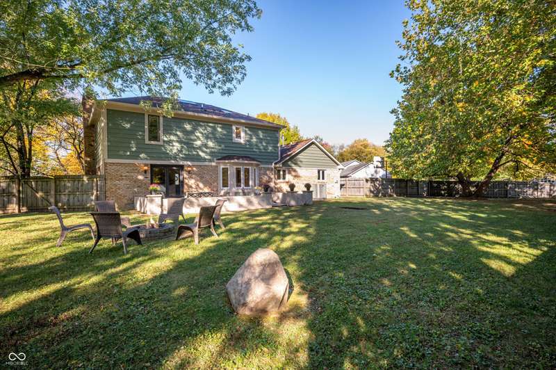 Hancock County Beauty! Discover an extraordinary 4bdrm/2.5 ba home in prestigious Mt. Vernon School District, where thoughtful design meets exceptional craftsmanship on a tranquil cul-de-sac lot. This stunning 2,400sqft home features meticulously refinished hardwood floors that flow seamlessly throughout, showcasing inherent elegance. The impressive foyer welcomes guests with intricate wood stair railings & stylish runner, setting the sophisticated tone. The gorgeous den captivates w/its fireplace centerpiece, crown molding, & custom built-ins creating refined comfort. Natural light floods the expansive family room, offering picturesque views of the extensive back patio through large windows. The heart of this home lies in its completely reimagined kitchen, where functionality meets contemporary style. The thoughtfully designed island layout enhances flow while showcasing new cabinetry, lustrous quartz countertops, & striking tile backsplash. Floating shelves add modern appeal alongside new fixtures, stainless steel appliances, & generous sink overlooking the sprawling backyard. The primary bedroom sanctuary boasts a stunning accent wall, generous windows, & walk-in closet. The primary bathroom represents luxury w/marble flooring, stylish tile shower w/built-in nook, new vanity w/dual sinks, & abundant natural light from skylight & window. Three additional large bedrooms offer comfortable accommodations w/large closets. The outdoor experience proves equally impressive on this picturesque lot, where mature trees provide privacy alongside a fully fenced backyard. The expansive patio creates ideal entertaining space, complemented by a charming fire pit perfect for autumn evenings. Recent updates include new windows, two-year-old roof, and four-year-old heating and cooling systems. Valley Brook Farms neighborhood offers direct connectivity to Buck Creek Trail, providing exceptional recreational opportunities and connecting to Lions Park and the renowned Pennsy Traii