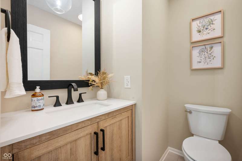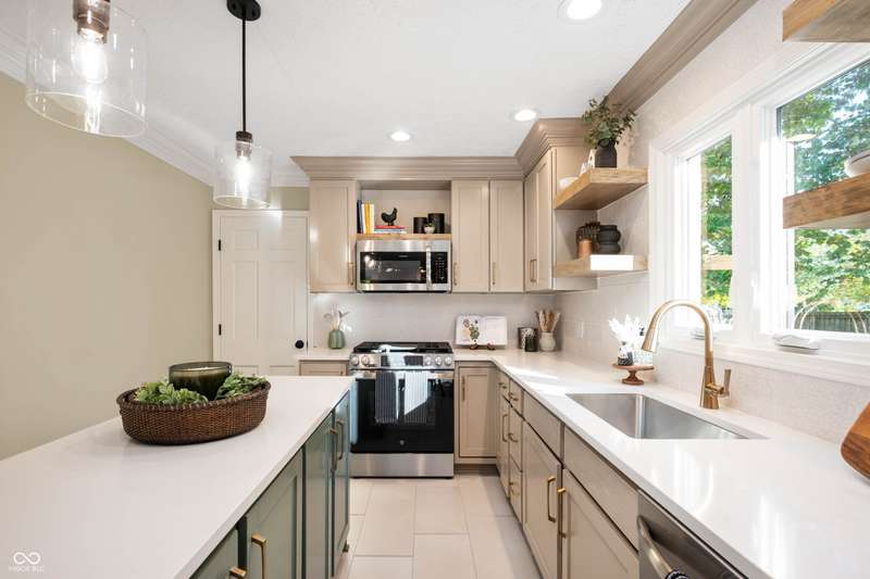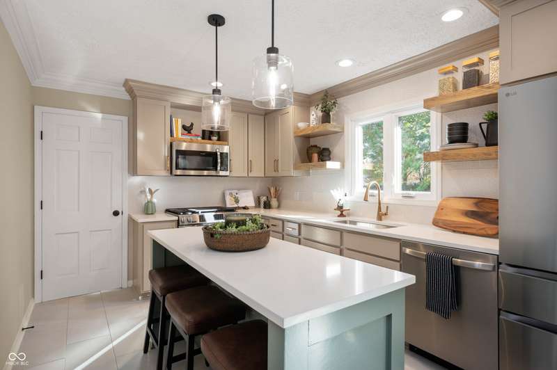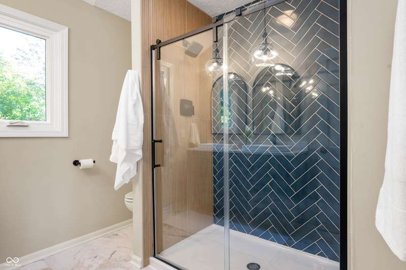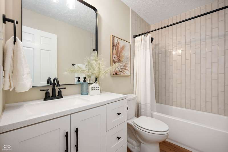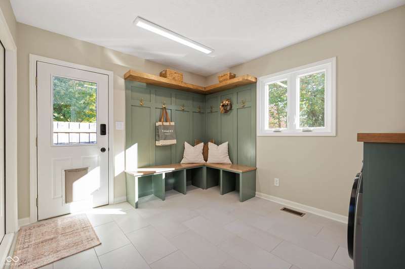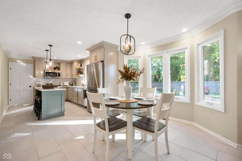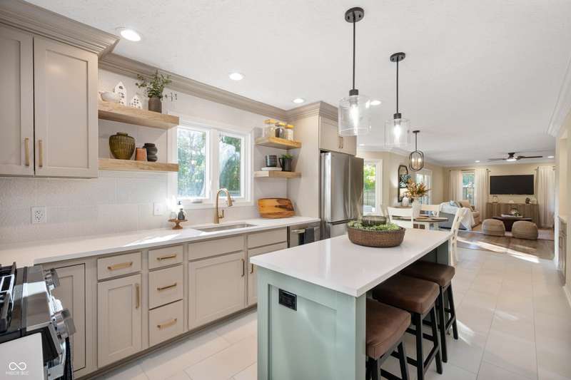 Hancock County Beauty! Discover an extraordinary 4bdrm/2.5 ba home in prestigious Mt. Vernon School District, where thoughtful design meets exceptional craftsmanship on a tranquil cul-de-sac lot. This stunning 2,400sqft home features meticulously refinished hardwood floors that flow seamlessly throughout, showcasing inherent elegance. The impressive foyer welcomes guests with intricate wood stair railings & stylish runner, setting the sophisticated tone. The gorgeous den captivates w/its fireplace centerpiece, crown molding, & custom built-ins creating refined comfort. Natural light floods the expansive family room, offering picturesque views of the extensive back patio through large windows. The heart of this home lies in its completely reimagined kitchen, where functionality meets contemporary style. The thoughtfully designed island layout enhances flow while showcasing new cabinetry, lustrous quartz countertops, & striking tile backsplash. Floating shelves add modern appeal alongside new fixtures, stainless steel appliances, & generous sink overlooking the sprawling backyard. The primary bedroom sanctuary boasts a stunning accent wall, generous windows, & walk-in closet. The primary bathroom represents luxury w/marble flooring, stylish tile shower w/built-in nook, new vanity w/dual sinks, & abundant natural light from skylight & window. Three additional large bedrooms offer comfortable accommodations w/large closets. The outdoor experience proves equally impressive on this picturesque lot, where mature trees provide privacy alongside a fully fenced backyard. The expansive patio creates ideal entertaining space, complemented by a charming fire pit perfect for autumn evenings. Recent updates include new windows, two-year-old roof, and four-year-old heating and cooling systems. Valley Brook Farms neighborhood offers direct connectivity to Buck Creek Trail, providing exceptional recreational opportunities and connecting to Lions Park and the renowned Pennsy Traii