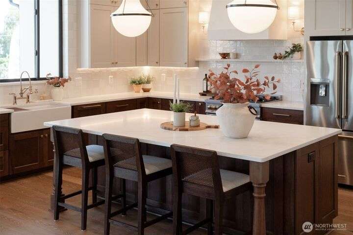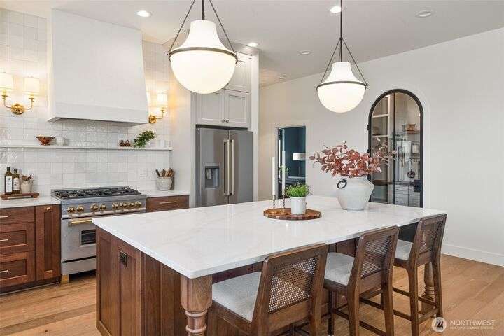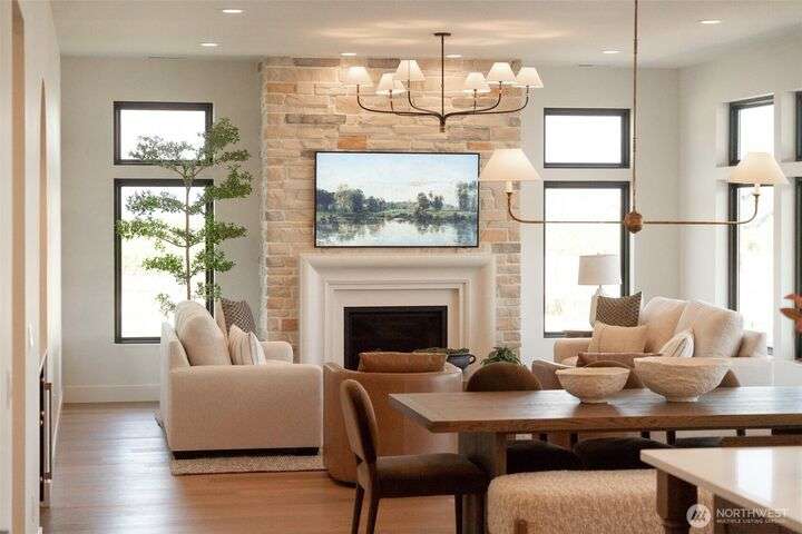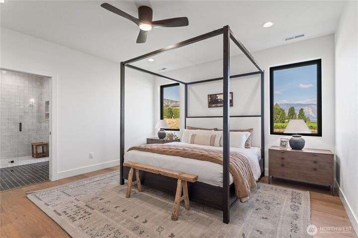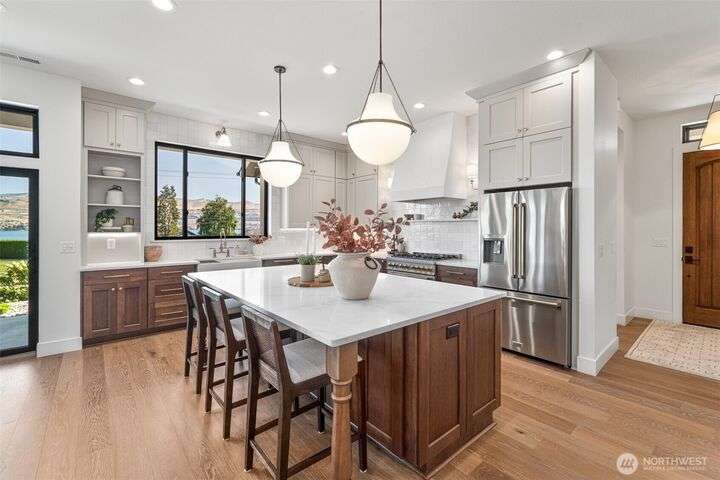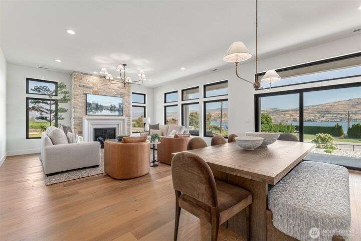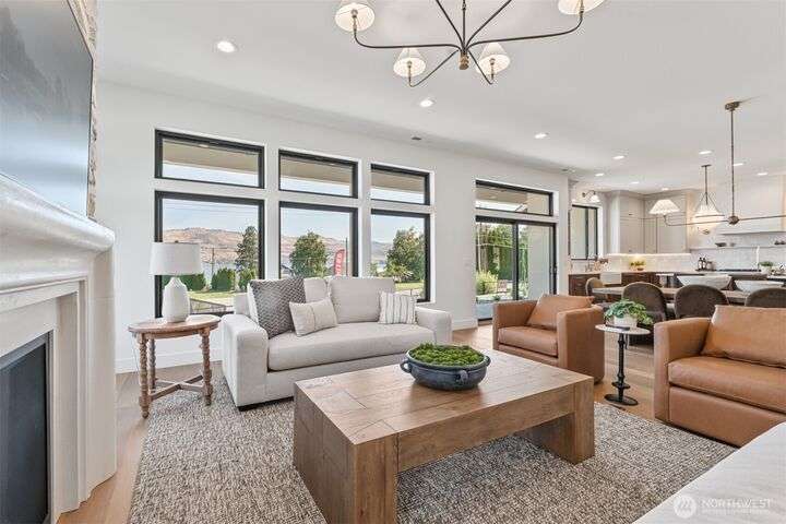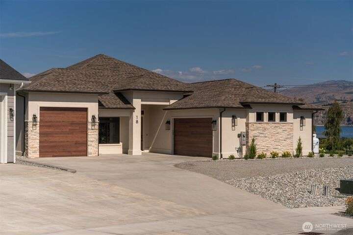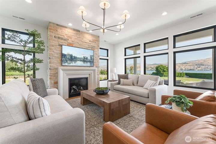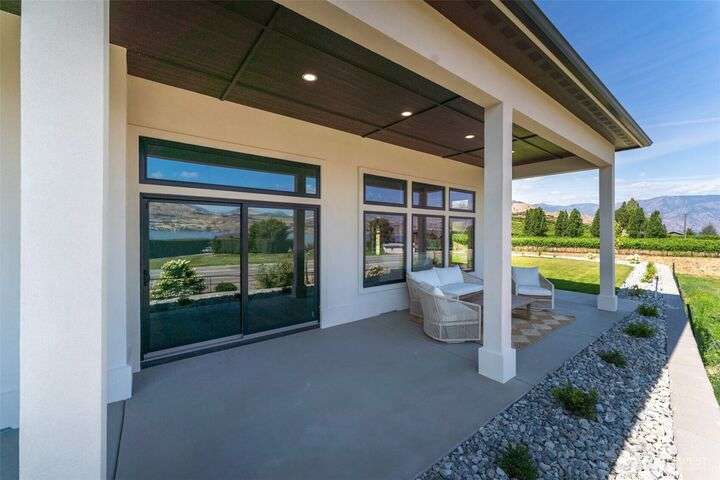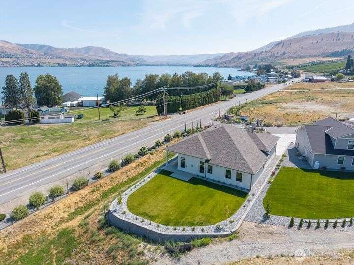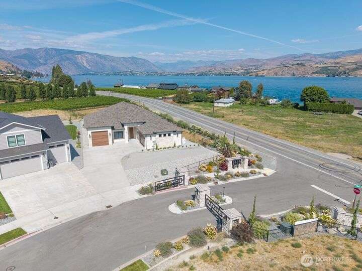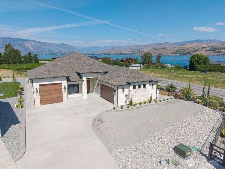 Stunning New Construction Showpiece by K&L Homes in Chelan’s coveted South Shore Golden Mile! This fully furnished, turn-key rambler offers top-tier craftsmanship & attention to detail throughout w/ high quality finishes including quartz counters, walk-in tile showers, wet bar, high-end Zline appliances, stucco exterior, gorgeous built in gas fireplace, & glass door walk in pantry. 2,363sq' of luxury living w/ 930sq' of fully finished garage space(one w/ 10’ door), easy access, plenty of parking, & ample room for a pool in the side yard. Enjoy lake views from your spacious covered patio & fully landscaped property! Gated community in prime location just minutes to downtown Chelan & short walk to many of Chelan's prominent wineries!