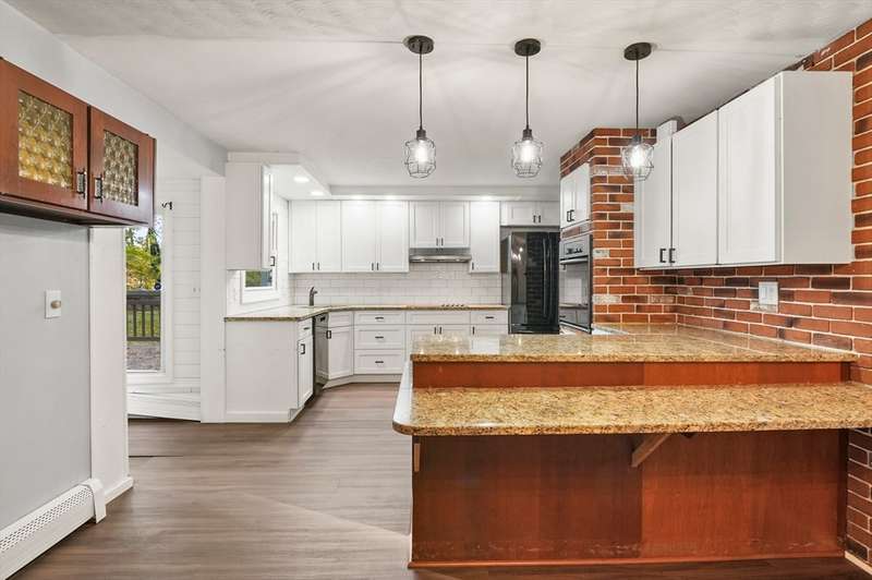Welcome to this unique Cape-style home, privately tucked away at the end of a dead-end street in Worcester! Inside you will find a large fireplaced living room with a picture window that fills the space with natural light, and an open kitchen offering granite counters, plenty of storage, a breakfast nook, and a dining area. A charming sunken dining room with a bay window provides the perfect spot for gatherings. Upstairs you’ll find three good-sized bedrooms, a full bath, and a bonus office space. The finished lower level adds even more flexibility with a bonus room, half bath, and laundry area. Enjoy the convenience of an attached garage, ample off-street parking, and a large yard surrounded by trees—your own private retreat just minutes from Vernon Hill School and Glodis Field. Make this inviting home yours and celebrate the season in comfort and style!