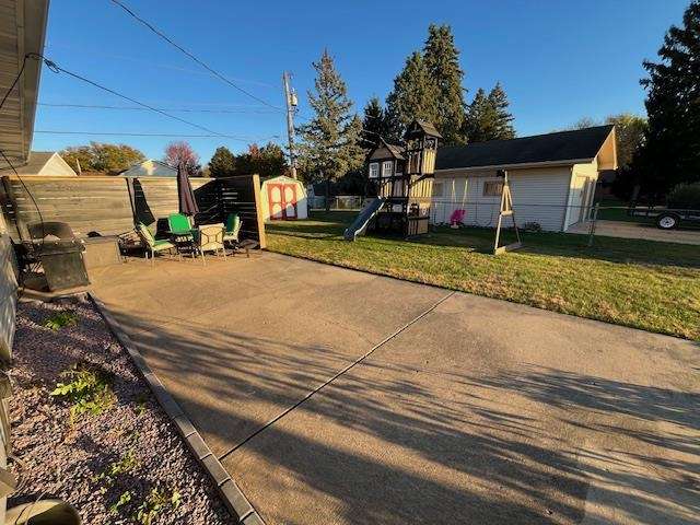Welcome to this beautifully updated 3-bedroom, 1.5-bath ranch home situated on a desirable corner lot! Featuring newer flooring and fresh siding, this home combines modern updates with cozy charm. The inviting dining room offers a lovely centerpiece with its fireplace (wood-burning insert) perfect for gatherings or quiet evenings in. The partially finished basement adds incredible versatility, providing a spacious rec room area and a dedicated office space ideal for work or play. Outside, you'll find plenty of yard space along with a barely used playground set, making it a great spot for outdoor fun. This move-in ready home truly has something for everyone!