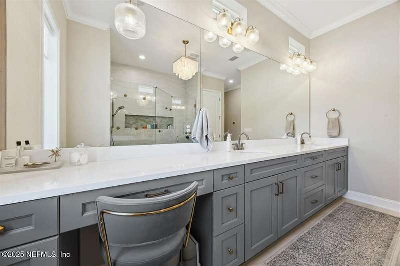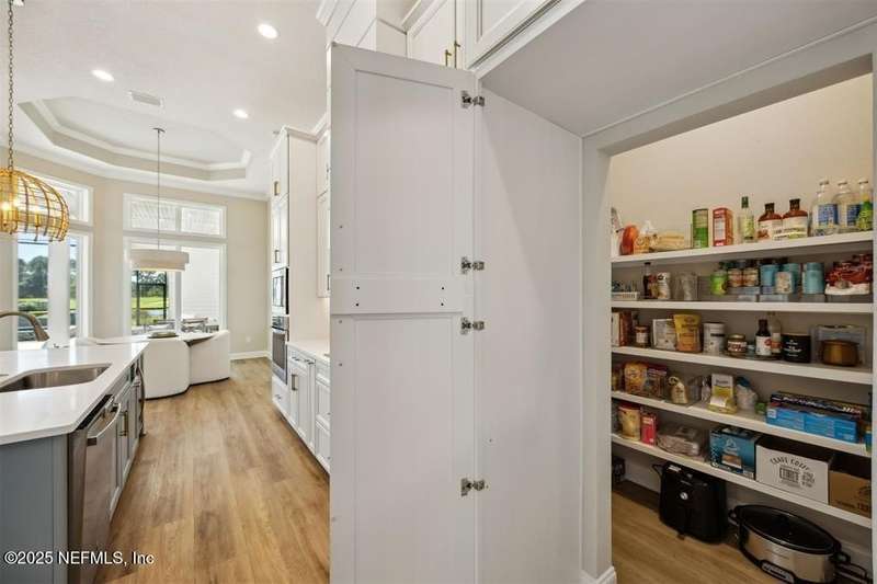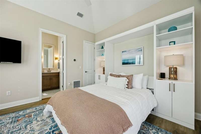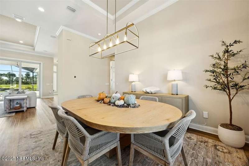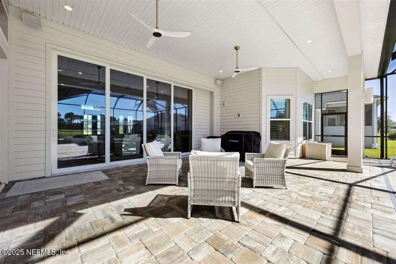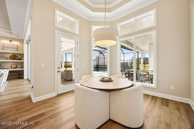 Step inside this stunning Egret V by ICI Homes, offering 4 bedrooms, 4.5 baths, and 3,395 sq. ft. of refined living space in Amelia National Golf & Country Club. A bright open layout features trey ceilings, a gas fireplace with custom built-ins, and waterfall sliders leading to a saltwater pool & spa overlooking the 15th green. The gourmet kitchen impresses with an island, breakfast nook, upgraded cabinetry, wine fridge, and hidden pantry. Each bedroom has its own en-suite bath, while the primary suite offers two walk-in closets and a spa-like bath. Additional highlights include a private office, casita with Murphy bed & full bath, and a three-car garage. Outdoor living shines with a screened lanai, grilling area, and heated spa-perfect for entertaining or relaxing in style. CDD paid off.