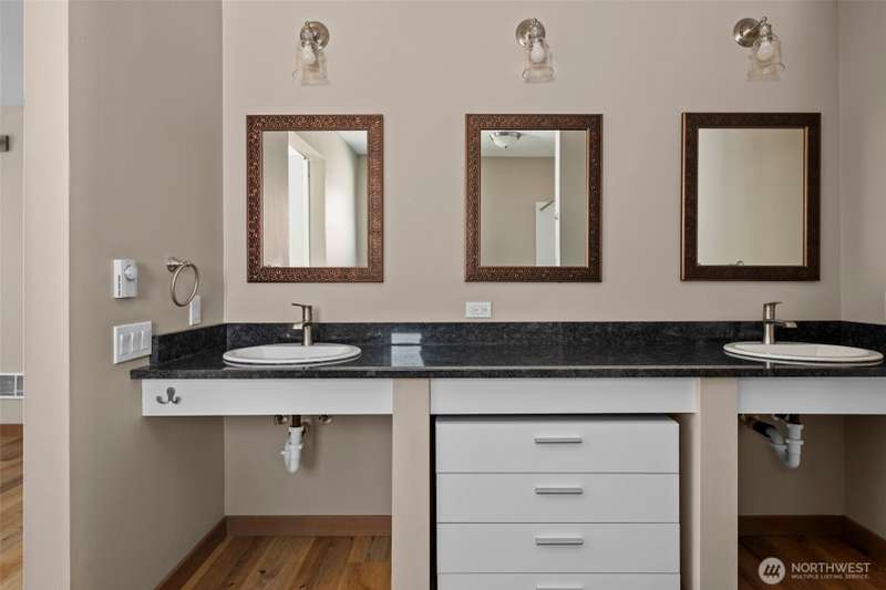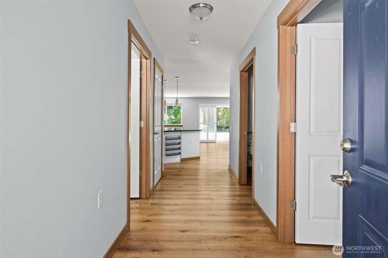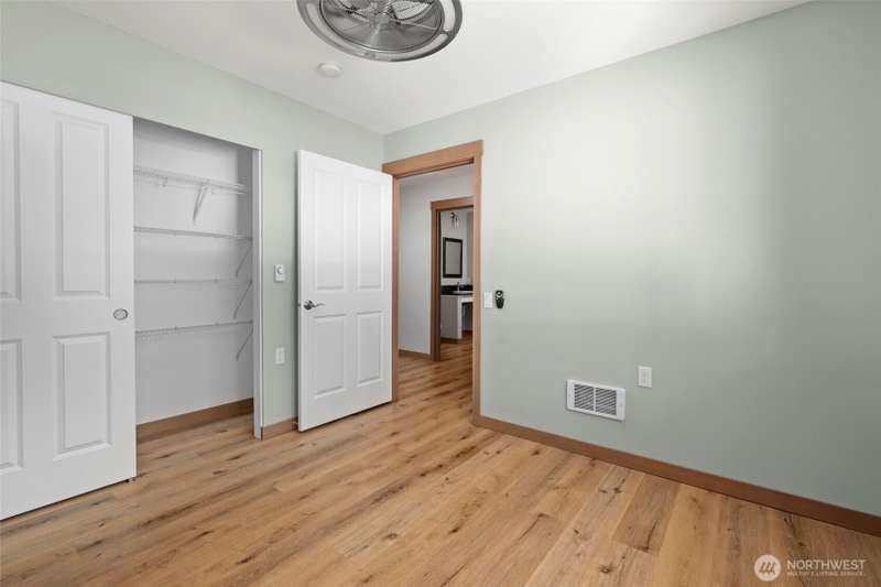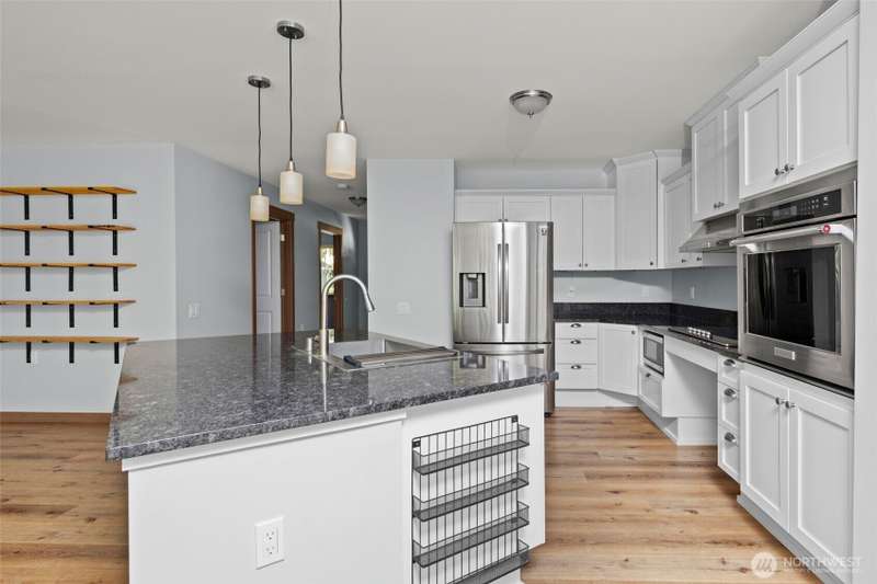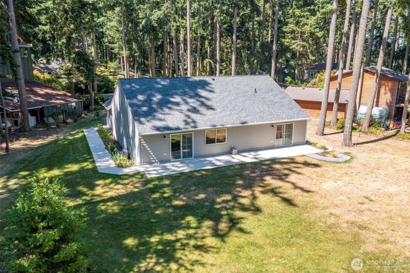 Better than new single story home in a rural setting close to downtown Coupeville w/ access to parks & beaches! Just shy of half an acre, fully wheelchair accessible, located in the heart of Whidbey’s rain shadow w/in Ebey’s Reserve, surrounded by mature trees on a dead end cul-de-sac. Inviting paved driveway & walkways w/ landscaped yard. Open living space w/ ample natural light & custom shutters w/ slider to back patio. Vinyl plank flooring throughout, spacious streamlined kitchen w/ SS appliances, granite countertops & custom cabinets. Large primary w/ walk-in closet & access to back patio, spacious en-suite w/ dual sinks & large curbless shower. Insulated 2 car garage w/ house water treatment softener. Efficient ductless heat pump & A/C