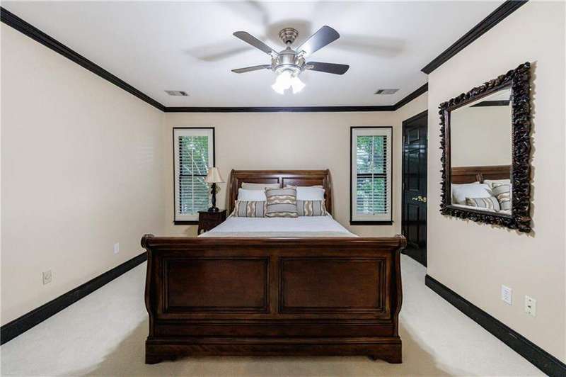 Welcome to this elegant hard-coat stucco Estate home, ideally situated on a serene and quiet cul-de-sac in the prestigious COUNTRY CLUB OF THE SOUTH. A charming exterior with stone accents and a classic beveled glass front door set the tone for the warmth and sophistication that awaits inside. Step into the grand two-story foyer, where natural light and timeless elegance greet you. The formal dining room, adorned with a bay window, provides the perfect setting for both intimate dinners and large-scale entertaining. The spacious Great Room is the heart of the home, featuring vaulted ceilings, a wall of windows, a fireplace with floor to ceiling stack stone, and French doors leading to the main-level porch. Designed for everyday living and seamless entertaining, the open-concept kitchen flows into the breakfast area and Great Room, with easy access to the screened porch-an ideal retreat for morning coffee or evening relaxation. The main-level primary suite is a true sanctuary, complete with a cozy sitting area, two-sided fireplace, and private access to the porch. Upstairs, you'll find three generously sized bedrooms: one with an en-suite bath and two sharing a well-appointed adjoining bath, all with abundant closet space. The fully finished terrace level is an entertainer's dream, offering a second kitchen, large family room, office, yoga/exercise room, guest bedroom, and full bath. Step outside to the covered terrace-level porch, featuring a custom stay-dry gutter system-perfect for enjoying the outdoors in any weather. This move-in ready home offers luxury, comfort, and lifestyle-all within one of Atlanta's most sought-after gated communities. Residents enjoy resort-style living with 24/7 manned security, a Jack Nicklaus-designed golf course, clubhouse, swim and tennis facilities, and a welcoming neighborhood atmosphere.
