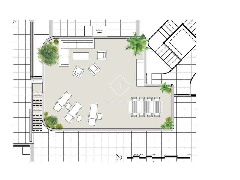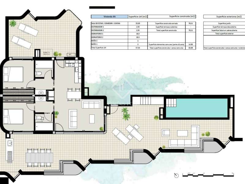Located in one of Ibiza's most vibrant areas , this new development is a contemporary residential concept comprised of 32 unique apartments, designed to offer a complete and sophisticated living experience. This complex stands out for its undulating façade and meticulous architecture, offering stunning views from its large glass balconies, filling each room with natural light and depth. In this privileged setting, we present an exclusive 2-bedroom, 2-bathroom penthouse with 70 m² of interior space and a stunning 175 m² private terrace that redefines Mediterranean luxury. The property 's interior is finished with top-quality materials: large-format porcelain stoneware flooring, high-end lacquered interior woodwork with fitted built-in wardrobes , and a fully equipped designer kitchen with Miele or similar appliances , including a dishwasher, oven, microwave, and washer-dryer. The elegant and functional bathrooms feature Villeroy & Boch sanitaryware, Grohe faucets, and showers with tempered glass screens. The penthouse offers exceptional thermal comfort thanks to underfloor heating throughout the property and an aerothermics conditioning system with ducted air conditioning. All of this is controlled by an advanced home automation system that manages the lighting, air conditioning, and blinds. The thermal and acoustic insulation, along with the double-glazed aluminum windows with thermal break, guarantees top-level energy efficiency. But without a doubt, the star of the show is its spectacular terrace, designed for maximum enjoyment: a private pool with a mosaic tile finish, a chill-out area with an exterior shower, barbecue, sink, and built-in refrigerator, all protected by a retractable motorized awning. Planters with automatic irrigation, strategic power outlets, and a layout designed for outdoor comfort make this space a true urban oasis. The property includes two underground parking spaces, a private storage room , and pre-installation for an electric vehicle charging station. It also benefits from access to all the complex's communal areas : the communal pool, fully equipped gym, sauna, and sustainable gardens. The complex has been designed as a comprehensive wellness space, with a wide range of high-end amenities : an audio system in every room, a video intercom, a private gym, a sauna, a concierge service, swimming pools on both the ground floor and the rooftop, a Brazilian-inspired communal garden with native and tropical vegetation, and a spectacular solarium with panoramic views of the sea and the island of Formentera. Furthermore, special emphasis has been placed on sustainability, integrating photovoltaic panels to reduce costs and minimize the environmental impact. This penthouse is a unique opportunity for those seeking a contemporary, efficient residence with the unmistakable Ibiza lifestyle, just steps from the sea.