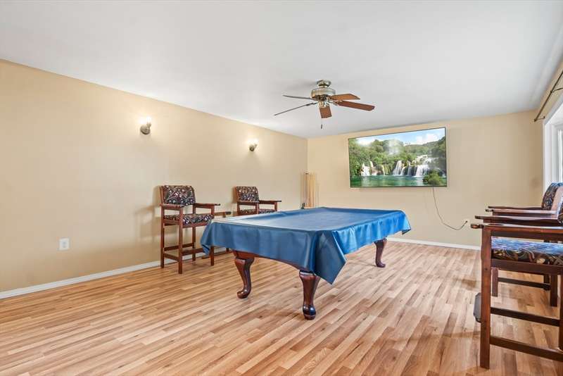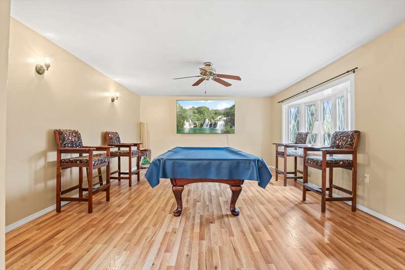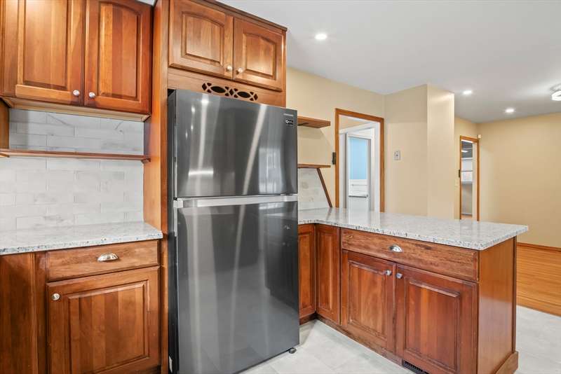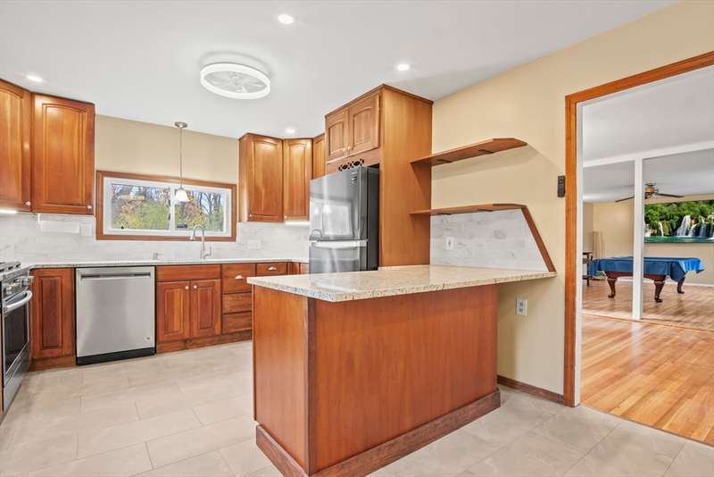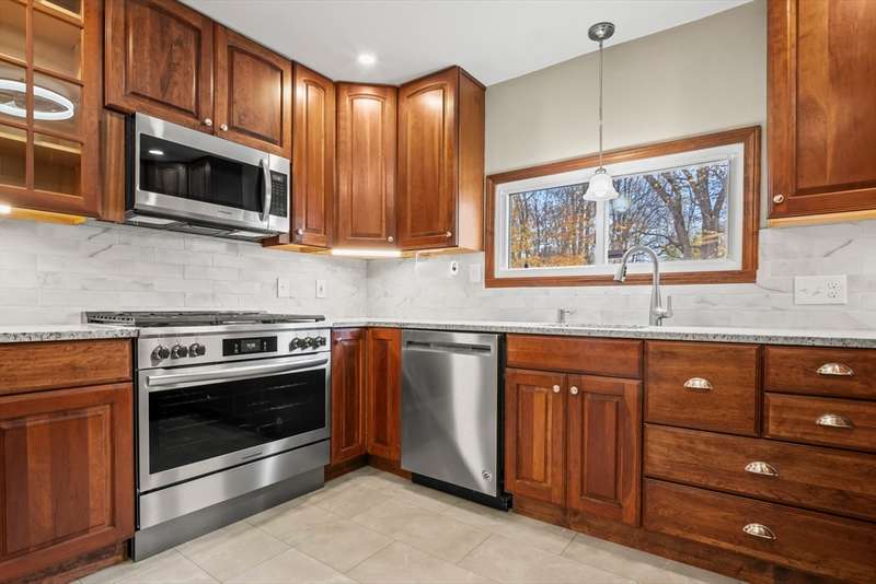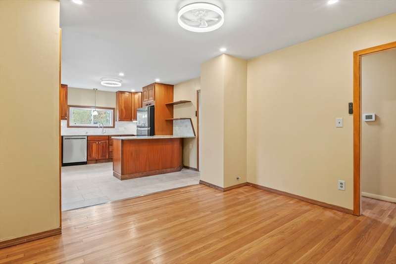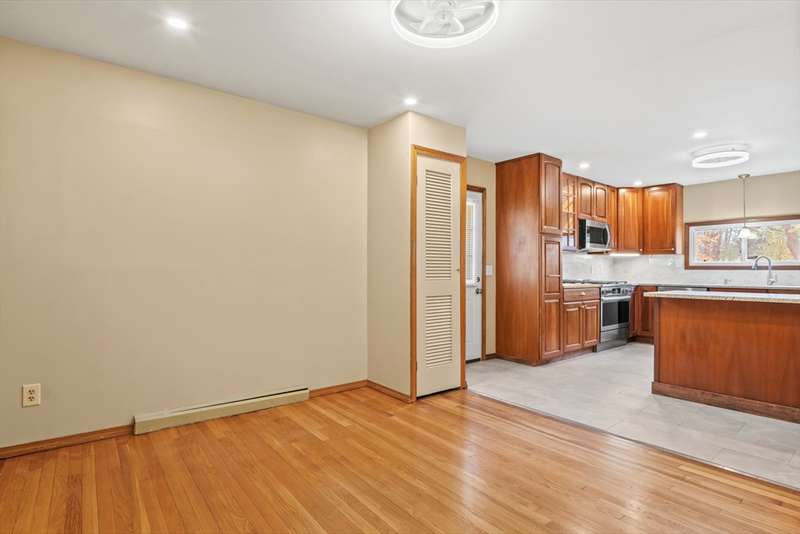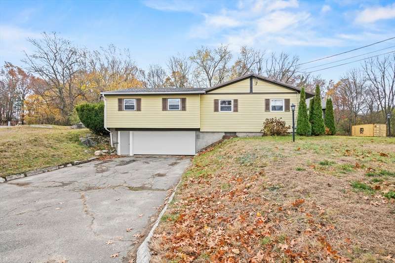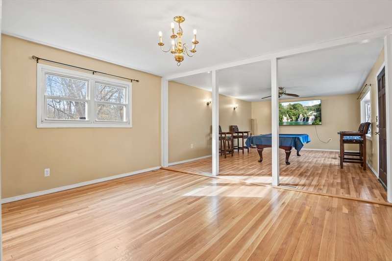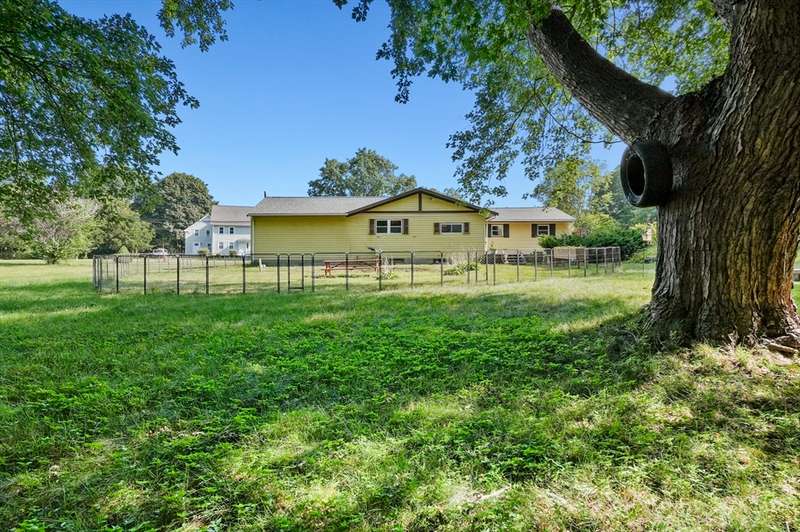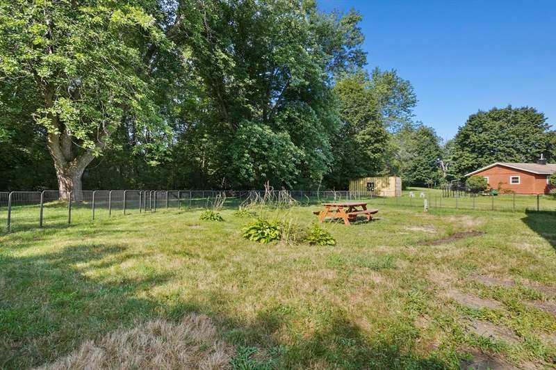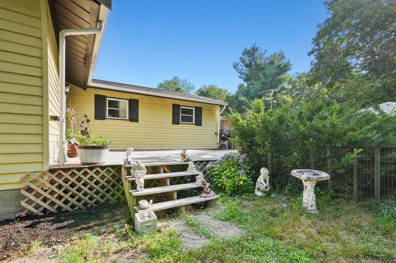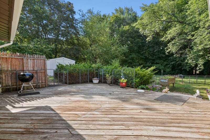 Welcome to this charming 4-bed ranch nestled on a serene, wooded lot—offering the perfect blend of privacy & comfort. Enter the sun-drenched living room featuring a beautiful bay window & gleaming HW floors, creating a warm & inviting space. Formal dining room also boasts HW, a convenient closet & direct access to the outdoors. Updated kitchen is ideal for both everyday living & entertaining, complete w/ a breakfast bar, SS appliances & tile flooring. Full bathroom includes a vanity while the 4 bedrooms offer plenty of storage with generous closets. One bedroom features a private half bath, another includes a walk-in closet & the spacious primary bedroom boasts its own walk-in for all your storage needs. Unwind on the spacious deck-perfect for summer BBQs. A large, unfinished basement offers great potential for future expansion & direct access to the 2-car garage, w/ NEW doors. Outside discover a handy storage shed & a yard surrounded by nature. Full list of updates attached!