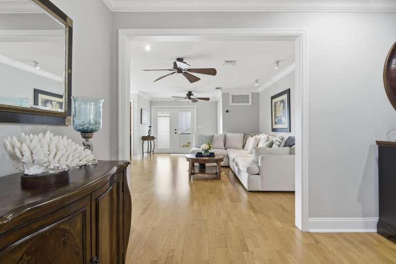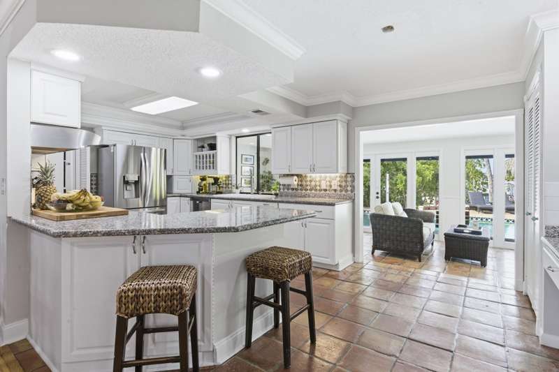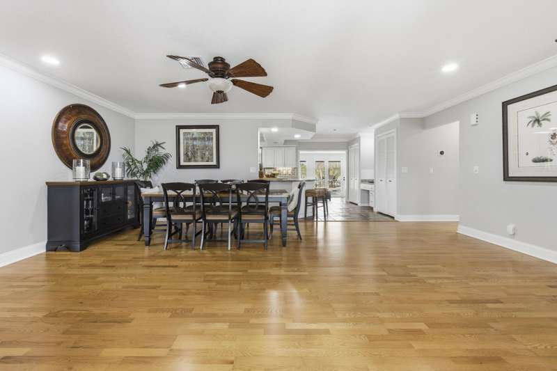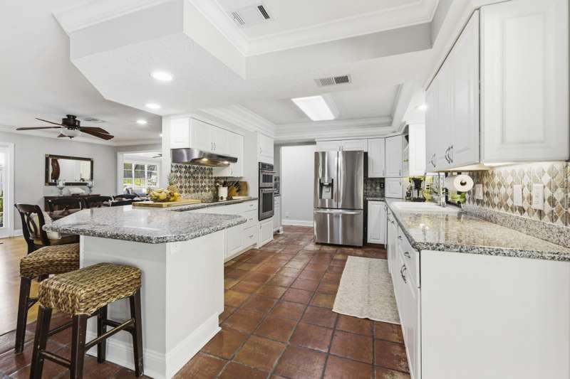 Located in the desirable Village of North Palm Beach, this waterfront residence blends coastal appeal with thoughtful design. The property features partial impact-rated windows, a metal roof, and a private dock with fish-cleaning station, offering direct canal access with fixed bridges leading to the Intracoastal Waterway and Atlantic Ocean. Inside, the home welcomes you with engineered hardwood flooring, recessed lighting, and crown molding throughout the main living areas. The open dining area connects to a well-appointed kitchen featuring granite countertops, a full tile backsplash, stainless-steel appliances. A breakfast nook and enclosed Florida room provide inviting spaces for dining or relaxation, complemented by a built-in cabinetry and reach in pantry.