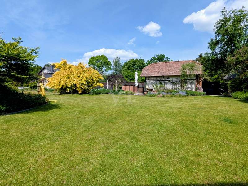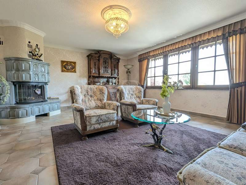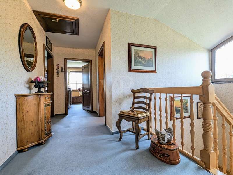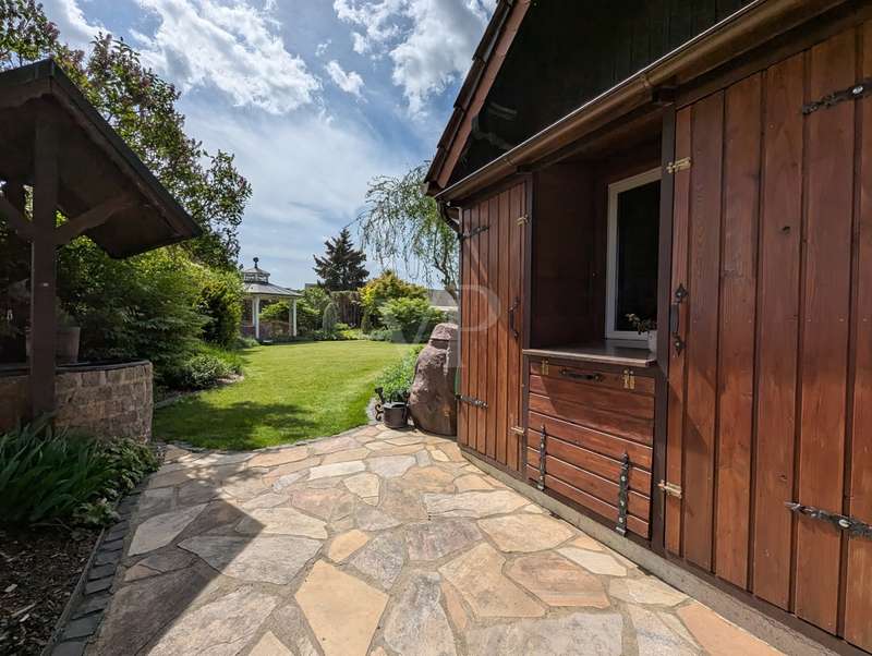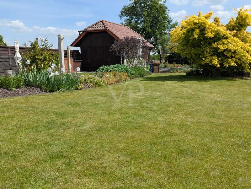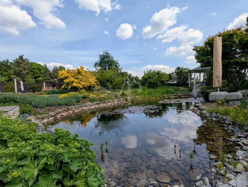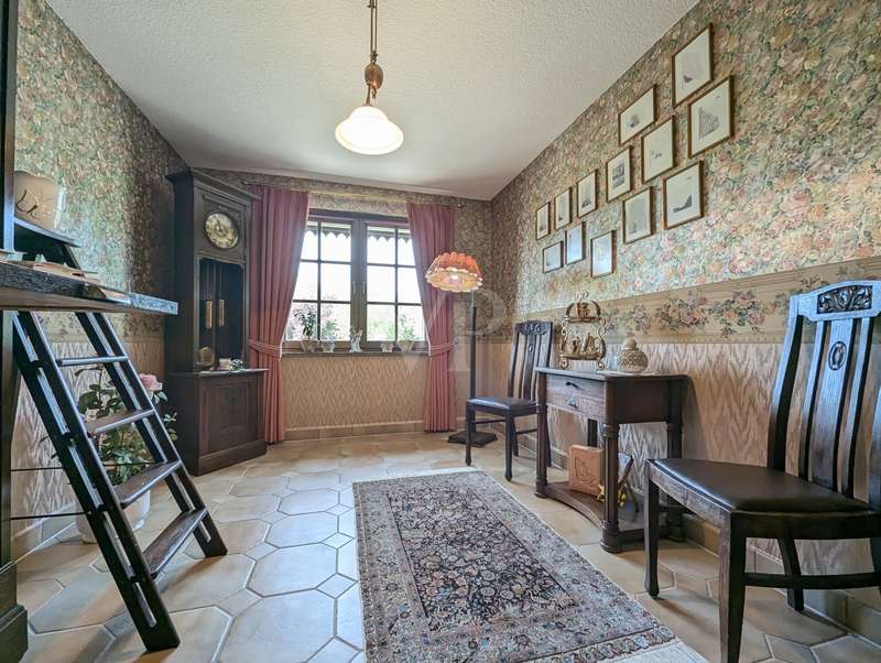 In the middle of the beautiful landscape of Drachhausen, this excellently maintained house with a park-like plot and facilities that leave nothing to be desired awaits you. This property combines modern technology, high-quality materials and a unique living atmosphere - ideal for discerning buyers who appreciate peace, space and quality. GROUND FLOOR - Elegant spaciousness with a view of the countryside: As soon as you enter, you are greeted by a light-flooded entrance area that resembles a conservatory and offers a wonderful view of the well-tended grounds. The spacious living room with fireplace invites you to spend cozy hours. A stylish library, an elegant bathroom with bathtub, a dining room, the fully equipped kitchen and a study complete the well thought-out room concept on this level. UPPER FLOOR - A stylish retreat: The upper floor offers space for the whole family. A children's room, a very large and cozy living room (ideal as a hobby room, living room or bedroom), the master bedroom, an exclusive dressing room and a modern bathroom with shower ensure comfort and a feel-good atmosphere. BASEMENT FLOOR - Wellness & function in perfection: Half of the basement has been converted into high-quality living space. A stylish wellness oasis with sauna, shower and relaxation area has been created here - a retreat for body and soul. There is also a second kitchen and an extremely convenient utility room with washing machine connection. The functional part of the basement houses the modern heating technology, a new hot water tank (from 2024), the technology for the solar system, which was installed in 2014, and the large garage, which can be accessed directly from the courtyard. TECHNOLOGY & ENERGY - Sustainable and future-proof: The house is state of the art in terms of energy. It is heated by a geothermal heat pump and the hot water pump was modernized in 2024. A photovoltaic system generates electricity and also feeds it into the grid. This means the house is not only comfortable, but also efficient and sustainable. OUTDOOR AREA - Park-like garden dream: The spacious plot was designed with great attention to detail by a landscape gardener and is reminiscent of a perfectly composed park. Green lawns, high-quality plants, natural stone elements, an idyllic pond, a cozy pavilion, a romantic tea house and several seating areas offer a variety of green retreats. The garden is watered by its own well. The ensemble is rounded off by a modern barn, which is used as a perfectly equipped workshop with an additional small kitchen area and a further storage area. This exceptional property offers the highest quality of living in a quiet, natural location. The combination of spaciousness, style, technical equipment and perfect maintenance makes this property a real gem. Move in, feel good, enjoy - welcome to your new dream home!
