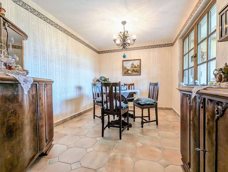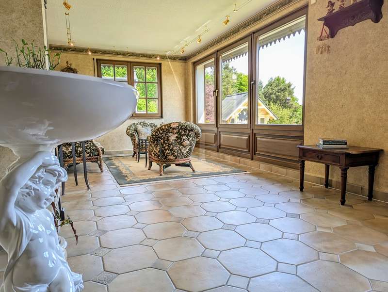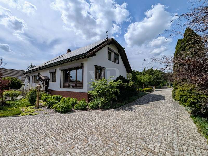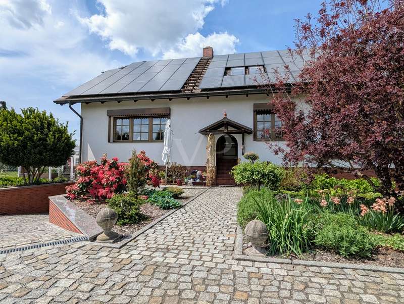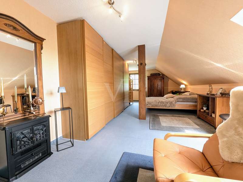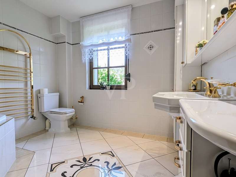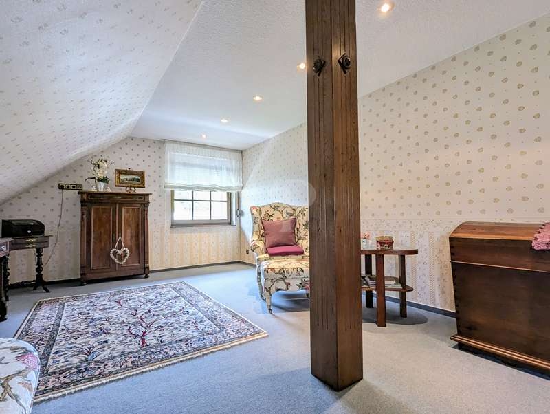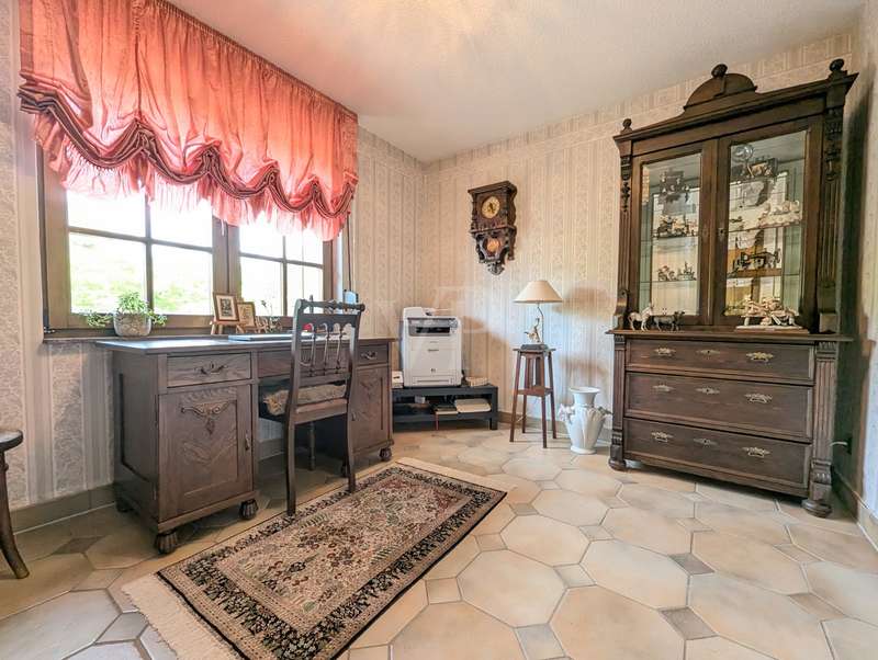 In the middle of the beautiful landscape of Drachhausen, this excellently maintained house with a park-like plot and facilities that leave nothing to be desired awaits you. This property combines modern technology, high-quality materials and a unique living atmosphere - ideal for discerning buyers who appreciate peace, space and quality. GROUND FLOOR - Elegant spaciousness with a view of the countryside: As soon as you enter, you are greeted by a light-flooded entrance area that resembles a conservatory and offers a wonderful view of the well-tended grounds. The spacious living room with fireplace invites you to spend cozy hours. A stylish library, an elegant bathroom with bathtub, a dining room, the fully equipped kitchen and a study complete the well thought-out room concept on this level. UPPER FLOOR - A stylish retreat: The upper floor offers space for the whole family. A children's room, a very large and cozy living room (ideal as a hobby room, living room or bedroom), the master bedroom, an exclusive dressing room and a modern bathroom with shower ensure comfort and a feel-good atmosphere. BASEMENT FLOOR - Wellness & function in perfection: Half of the basement has been converted into high-quality living space. A stylish wellness oasis with sauna, shower and relaxation area has been created here - a retreat for body and soul. There is also a second kitchen and an extremely convenient utility room with washing machine connection. The functional part of the basement houses the modern heating technology, a new hot water tank (from 2024), the technology for the solar system, which was installed in 2014, and the large garage, which can be accessed directly from the courtyard. TECHNOLOGY & ENERGY - Sustainable and future-proof: The house is state of the art in terms of energy. It is heated by a geothermal heat pump and the hot water pump was modernized in 2024. A photovoltaic system generates electricity and also feeds it into the grid. This means the house is not only comfortable, but also efficient and sustainable. OUTDOOR AREA - Park-like garden dream: The spacious plot was designed with great attention to detail by a landscape gardener and is reminiscent of a perfectly composed park. Green lawns, high-quality plants, natural stone elements, an idyllic pond, a cozy pavilion, a romantic tea house and several seating areas offer a variety of green retreats. The garden is watered by its own well. The ensemble is rounded off by a modern barn, which is used as a perfectly equipped workshop with an additional small kitchen area and a further storage area. This exceptional property offers the highest quality of living in a quiet, natural location. The combination of spaciousness, style, technical equipment and perfect maintenance makes this property a real gem. Move in, feel good, enjoy - welcome to your new dream home!