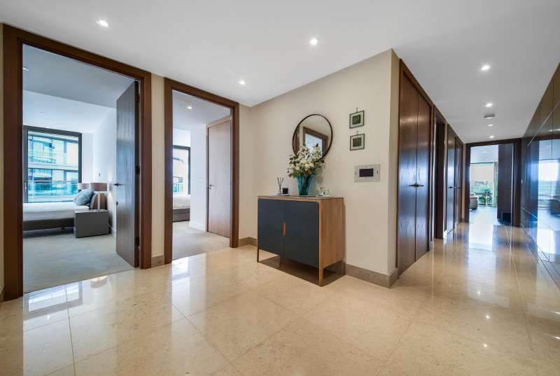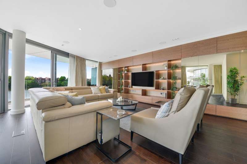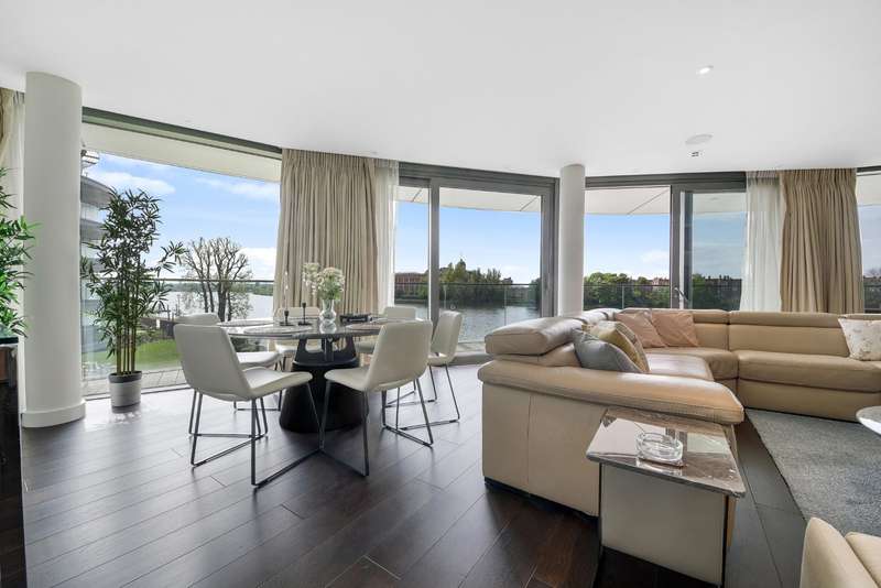 Three En-Suite Bedrooms | Four Bathrooms | Wraparound Terrace | Five Star Amenities | Lift | Underground Parking | Concierge | Positioned along the tranquil banks of the River Thames, this exquisite three-bedroom, four-bathroom apartment is located within Goldhurst House, part of the prestigious Fulham Reach development. Occupying a prime position on the second floor, the apartment spans a generous layout, perfectly designed for modern living and effortless entertaining. The curved, open-plan reception area is a striking centrepiece, enhanced by floor-to-ceiling windows that showcase uninterrupted views of the river and landscaped gardens. A large private wraparound terrace extends the living space outdoors, inviting serene mornings and sunset gatherings with panoramic backdrops. The bespoke kitchen is fully integrated with premium appliances, sleek cabinetry, and a contemporary finish, seamlessly complementing the overall aesthetic of the home. Each of the three double bedrooms includes their own ensuite bathroom and fitted wardrobes, while the principal suite offers the added luxury of an extensive walk-in dressing room. Additional conveniences include a guest bathroom, a separate cloakroom, underfloor heating, wood flooring throughout, and integrated air conditioning. Residents enjoy access to an exceptional array of five-star amenities including a private swimming pool, spa, sauna, state-of-the-art gym, cinema screening room, snooker room, wine cellar, and a virtual golf simulator. A 24-hour concierge ensures discreet and professional service at all times, while secure underground parking and a private storage room add to the practicality of this outstanding offering. Set within beautifully landscaped gardens, the development also features a vibrant mix of on-site cafés, restaurants, and retail options. Located just moments from Hammersmith Underground station (13min walk), with direct access to the Piccadilly, District, Circle, and Hammersmith & City lines, the apartment provides easy connectivity to Heathrow Airport, the West End, and the City of London. Lease 991 years Virtual or video viewing also available 3 Double Bedrooms 4 Modern Bathrooms 2nd Floor with Wrap Around Balcony Beautiful Views Of The River And Gardens Floor To Ceiling Windows Air Conditioning and Underfloor Heating Swimming Pool, Gym, Sauna Cinema Room, Golf, Snooker, Cellar Underground Parking with Own Parking Space 24/7 Concierge Lease: 991 years