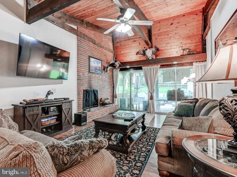 Serenely located at the very end of a quiet court and up a long private driveway, this 4 bedroom split level features on the main level : primary suite, 2nd & 3rd bedrooms, 2nd full bath, powder room, 2 dens, 2 fireplaces, and remodeled kitchen with convenient covered walkway to carport and exterior storage room. Walk right out the rear sliding doors to the covered patio and large fenced yard. The upper level boasts a 4th bedroom, full bath, big storage room and large great room. Added bonus -- enjoy your own private tennis/pickleball court! New roof. Call Harriet for all showings.