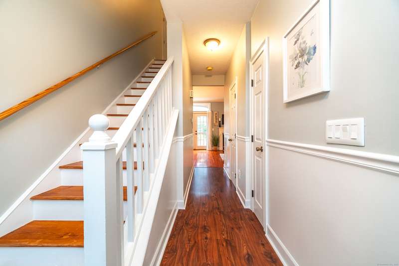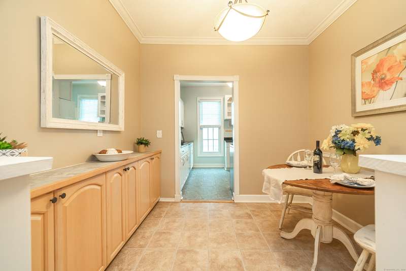 If you're searching for the perfect blend of modern comfort and natural serenity, this beautifully modernized 2-bedroom, 2 1/2-bath end-unit delivers it all. Step inside to discover contemporary finishes throughout, including granite kitchen counters, custom built-in dining room cabinetry, and two inviting fireplaces that add warmth and charm. The gas line for the living room fireplace insert has been installed, is presently disconnected. Double sets of French doors open to a spacious deck (replaced in 2022), perfect for morning coffee or evening gatherings surrounded by peaceful views. Each bedroom has its own full bath. The finished walk-out basement is designed for entertaining - complete with a granite-topped bar and direct access to the outdoors. Furnace and A/C condenser replaced in 2024. Enjoy the rare perk of direct access to the Mattabesset Multi-Use Trail, offering 2.5 miles of scenic biking and walking paths right outside your door. And when it's time to head out, you're jus