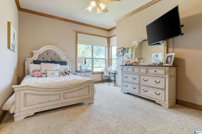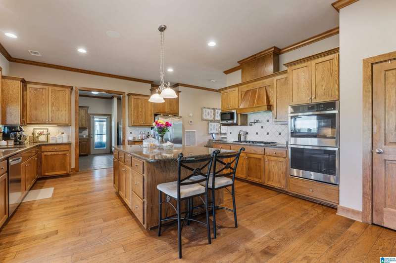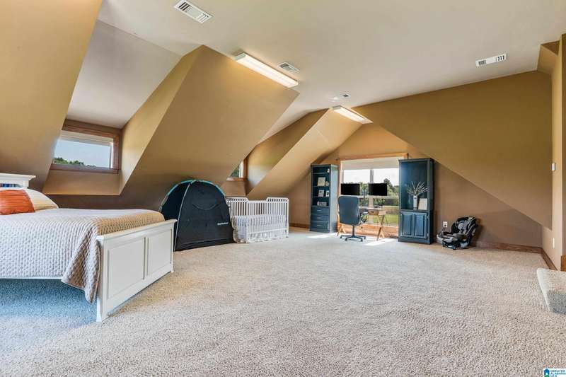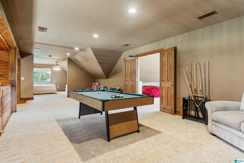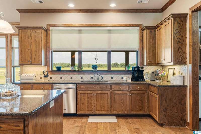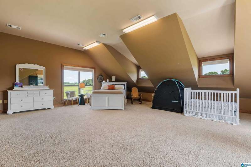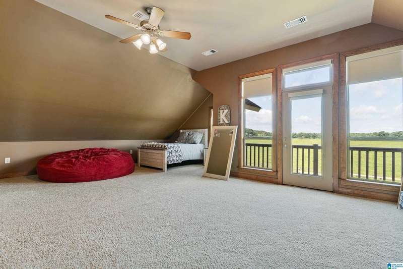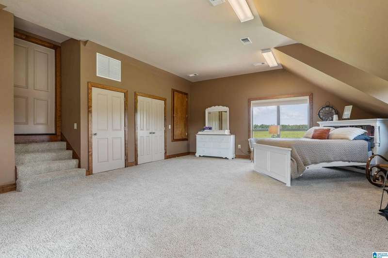 This beautiful ranch home sits on 14 acres with 2 ponds, outdoor spaces with screened and open porches, barn and workshop perfect for family gatherings and entertaining. Inside, the great room has tongue and groove paneling, a 25-foot vaulted ceiling, hardwood floors, a stone fireplace and custom light fixtures and a wall of windows to enjoy the view. The kitchen features a granite-topped island, a five-burner gas cooktop, and double wall ovens, along with ample counter space. A cozy breakfast nook and adjacent sunroom flood the home with natural light.The luxurious master suite is completed with dual dressing areas, walk-in closets, a jetted tub, and a separate shower. The laundry room has plenty of storage and space for an extra refrigerator. Two guest rooms share a bathroom, while upstairs, you will find a large loft, another bedroom with a private balcony, rec room and full bathroom. The Bonus room above the carport that can be access from the loft or exterior adds 601 sq ft!