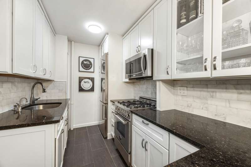 Upon entry, you are met by a long foyer containing 2 oversized closets. The tastefully renovated, high-end, open kitchen is a chef's dream complete with quartz countertops, Carrara marble subway tile backsplash, an instant hot water filter, dishwasher, Bertazzoni range, Summit refrigerator, sizable food pantry, and a wine fridge.