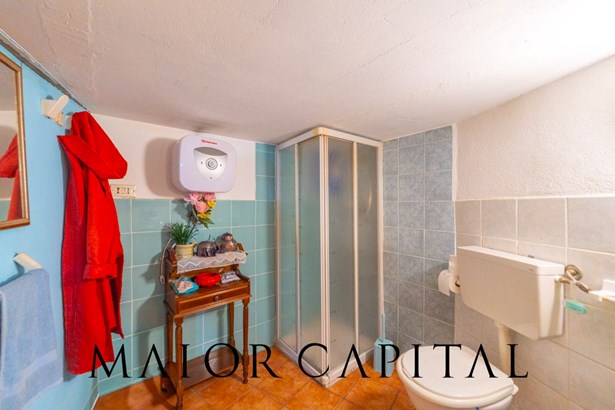 The lower floor, accessible directly from the outside, is currently used as a basement room: a large and versatile space, consisting of a living room, open kitchen, dining room and an additional bathroom with shower. An ideal solution for those who want to create an additional bedroom separate from the main body of the house, perfect for ensuring greater privacy, accommodating family members or creating an independent space for children. Also suitable as a hobby area or mini-apartment for guests.