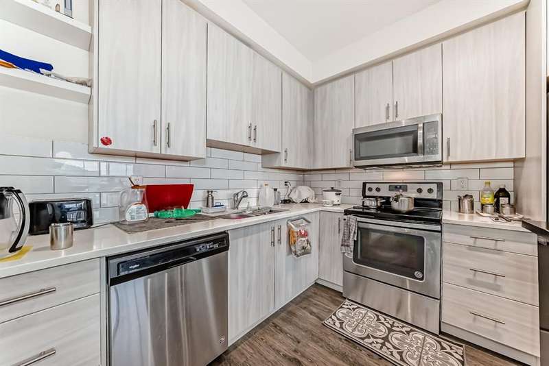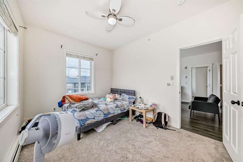 BEST PRICED TOP-FLOOR CORNER UNIT in LEGACY – Loaded with Upgrades & Move-In Ready! Welcome to Legacy, one of Calgary’s fastest-growing and most celebrated communities—designed for families, professionals, and investors alike! Known for its expansive green spaces, scenic walking paths, vibrant retail plazas, and quick access to Stoney Trail, Macleod Trail, South Health Campus,and Township Shopping Centre, this master-planned neighborhood is a destination for smart living. This TOP-FLOOR CORNER UNIT at 215 Legacy Blvd SE truly stands out—offering unmatched privacy, an abundance of natural light, and superior finishes throughout its -792.2 sq. ft. of beautifully upgraded living space. Built in 2018,, this home offers the ideal blend of modern design and worry-free ownership. Features That Set It Apart: Central Air Conditioning – Stay cool all summer! 9-ft ceilings & oversized windows for a bright, airy feel Gourmet kitchen with extended soft-close cabinetry, quartz countertops, upgraded stainless steel appliances, and large center island —ideal for hosting or meal prepping Custom walk-in closet in the spacious primary bedroom with a private ensuite Full second bathroom and second bedroom—perfect for guests, office, or rental potential In-suite front-load laundry for total convenience Private balcony with gas BBQ hookup —perfect for morning coffee or summer grilling Titled underground parking + storage locker directly in front of the stall Move-in ready with full window covering package and drapes in the primary bedroom All this in a quiet, well-maintained building steps from Legacy Park, playgrounds, transit stops, and planned future schools. Whether you’re a first-time buyer, downsizer, or investor, this suite checks every box—and then some. Offered at the BEST PRICE in the building for a unit of this calibre! Don’t miss the rare opportunity to own a top-floor, corner unit with upgrades and lifestyle perks that truly stand out. Legacy Living Starts Here – Book your private showing today and experience the difference!