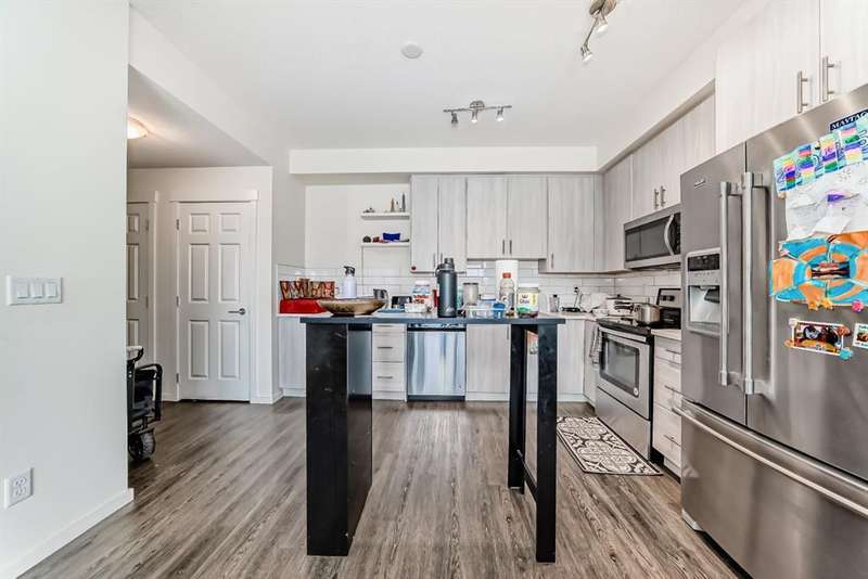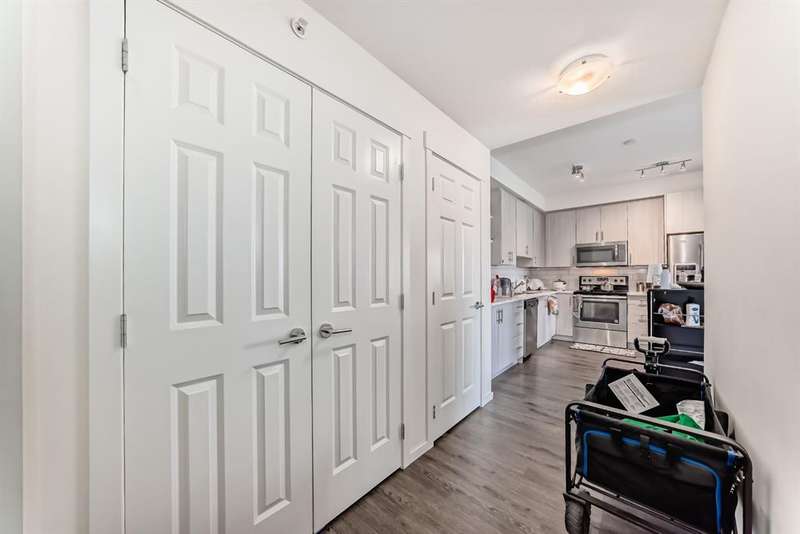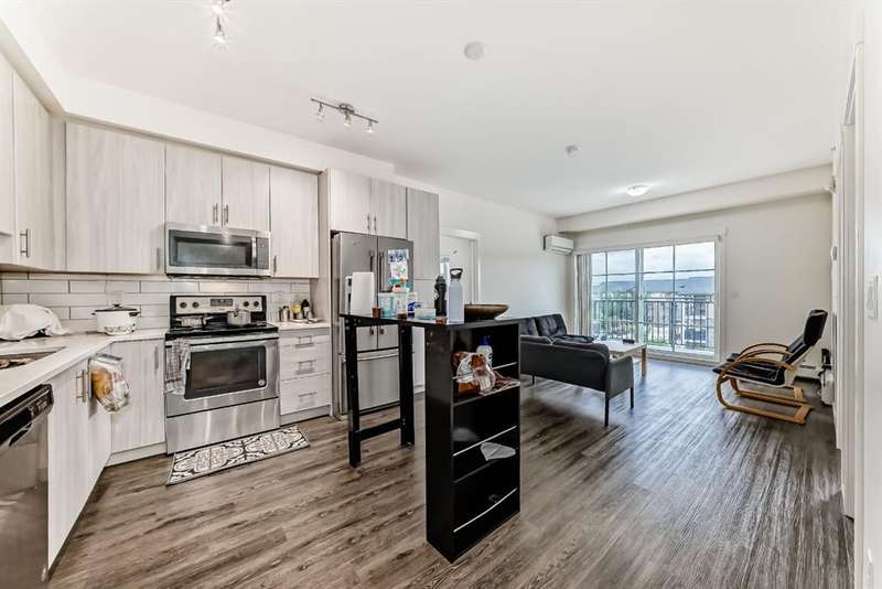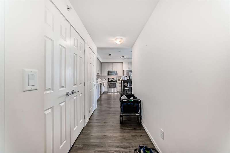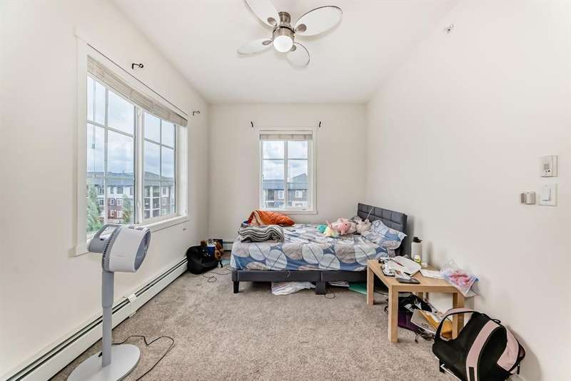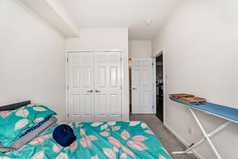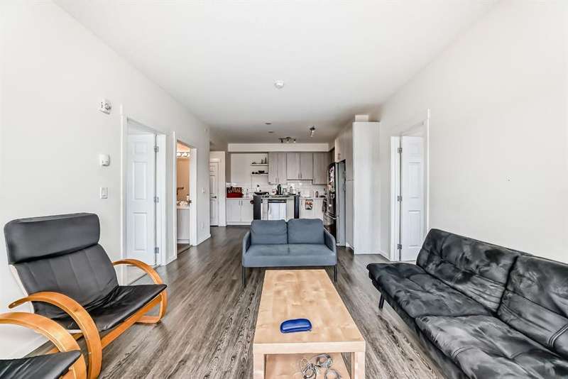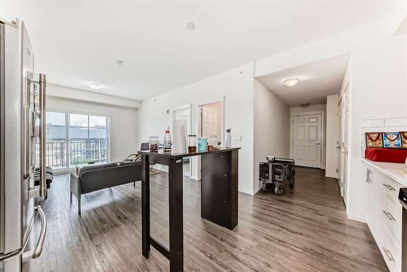 BEST PRICED TOP-FLOOR CORNER UNIT in LEGACY – Loaded with Upgrades & Move-In Ready! Welcome to Legacy, one of Calgary’s fastest-growing and most celebrated communities—designed for families, professionals, and investors alike! Known for its expansive green spaces, scenic walking paths, vibrant retail plazas, and quick access to Stoney Trail, Macleod Trail, South Health Campus,and Township Shopping Centre, this master-planned neighborhood is a destination for smart living. This TOP-FLOOR CORNER UNIT at 215 Legacy Blvd SE truly stands out—offering unmatched privacy, an abundance of natural light, and superior finishes throughout its -792.2 sq. ft. of beautifully upgraded living space. Built in 2018,, this home offers the ideal blend of modern design and worry-free ownership. Features That Set It Apart: Central Air Conditioning – Stay cool all summer! 9-ft ceilings & oversized windows for a bright, airy feel Gourmet kitchen with extended soft-close cabinetry, quartz countertops, upgraded stainless steel appliances, and large center island —ideal for hosting or meal prepping Custom walk-in closet in the spacious primary bedroom with a private ensuite Full second bathroom and second bedroom—perfect for guests, office, or rental potential In-suite front-load laundry for total convenience Private balcony with gas BBQ hookup —perfect for morning coffee or summer grilling Titled underground parking + storage locker directly in front of the stall Move-in ready with full window covering package and drapes in the primary bedroom All this in a quiet, well-maintained building steps from Legacy Park, playgrounds, transit stops, and planned future schools. Whether you’re a first-time buyer, downsizer, or investor, this suite checks every box—and then some. Offered at the BEST PRICE in the building for a unit of this calibre! Don’t miss the rare opportunity to own a top-floor, corner unit with upgrades and lifestyle perks that truly stand out. Legacy Living Starts Here – Book your private showing today and experience the difference!