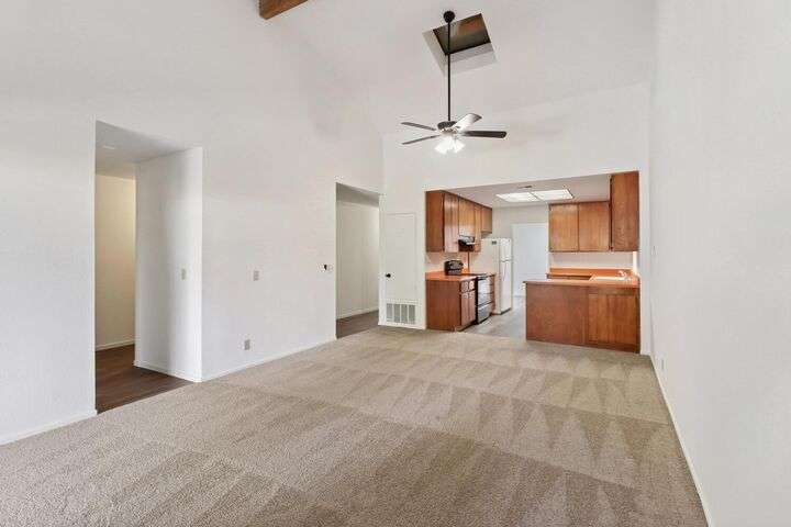 Looking for an investment, downsizing or a first-time buyer this property checks all the boxes! Spacious 2-bedroom, 2-bath half plex with a two-car garage features a terrific floor plan. The vaulted ceilings with wood beams, skylights, and open concept allow for plenty of Natural light and there is a cozy fireplace for the cool nights. The large kitchen has ample counter and cabinet space, and there is a flex room off the kitchen, perfect for an office, dining or workout room. Home boasts new interior paint, LVP flooring, carpet in the bedrooms, and updated light fixtures. There is a private front patio and fenced backyard for entertaining, with access from both the primary and family rooms. The property is situated near UC Davis, offering convenient freeway access and proximity to Arroyo Park, walking paths, and a bus line to UCD, making it an excellent option for both investors and first-time buyers.
