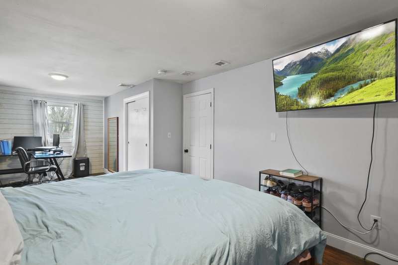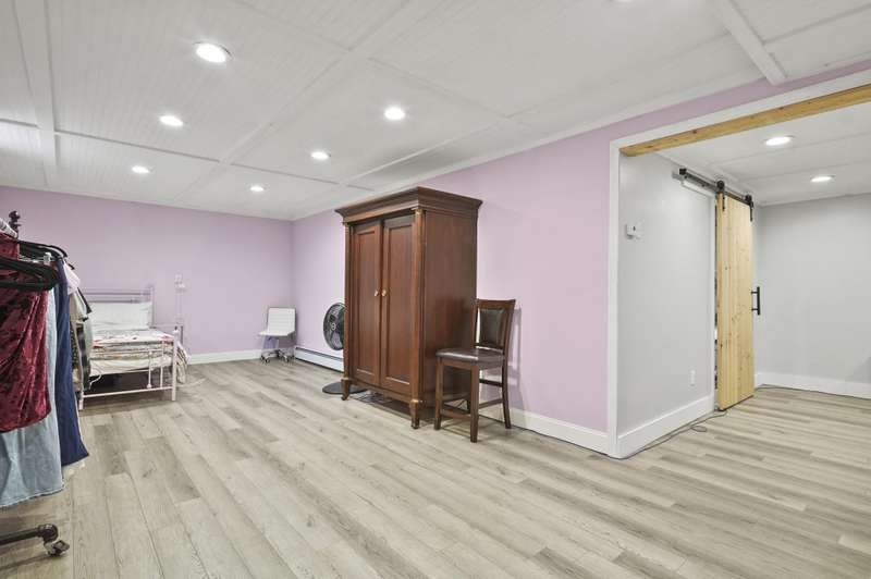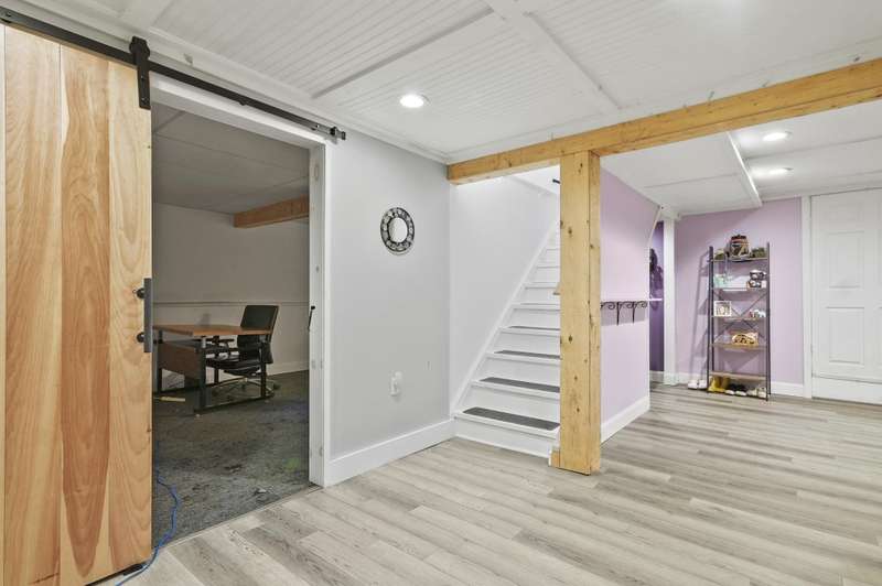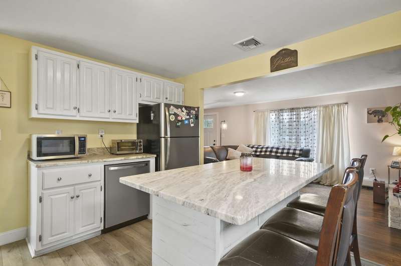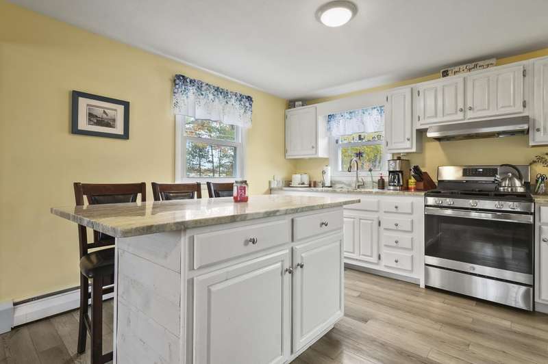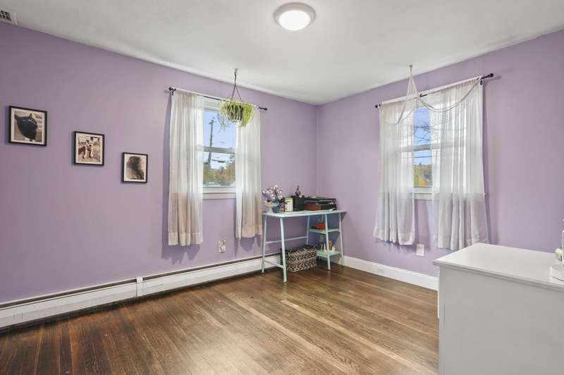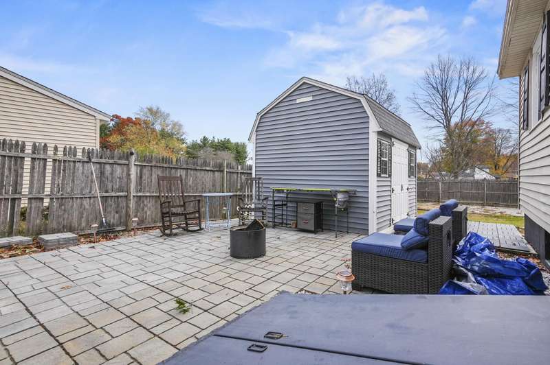 Welcome to this charming 2-bedroom ranch perfectly situated on a desirable corner lot! Enter inside to find a bright and inviting living room featuring a beautiful bay window, gleaming hardwood floors, and a cozy wood-burning fireplace—ideal for chilly and relaxing evenings. The kitchen offers granite countertops, ample cabinetry, and convenient exterior access to the composite deck, perfect for entertaining or enjoying your morning coffee. Both bedrooms feature hardwood flooring and generous closet space, including a primary bedroom with two closets for added storage. The full bath showcases a custom-built linen cabinet. Downstairs, you’ll find two versatile bonus rooms offering endless possibilities—create a home office, gym, or guest space to suit your needs. The lower level also includes a dedicated laundry area for convenience. The exterior includes a good sized yard with a large patio and a storage shed for tools or seasonal items. This delightful home combines comfort, character, practicality and is ready for you to move in and make it your own!