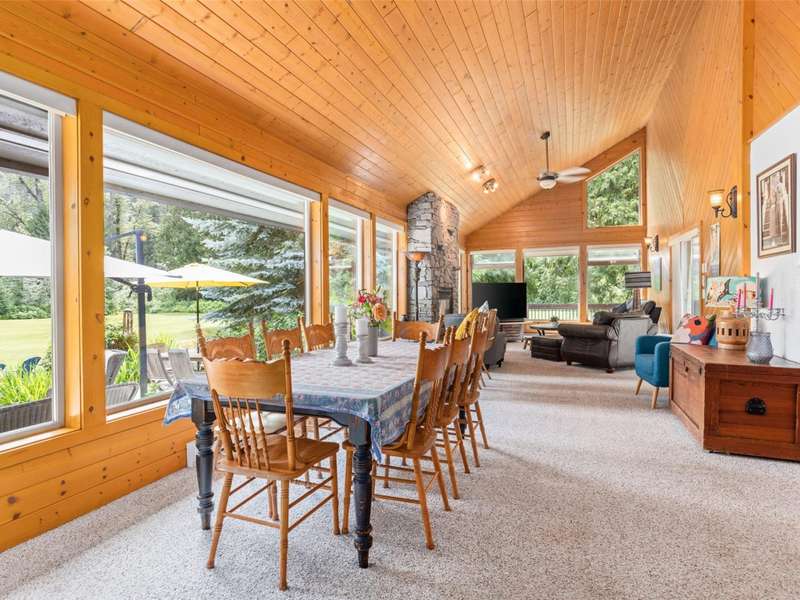 Welcome to your own private sanctuary! This stunning property offers 4.56 acres of tranquility, nestled on the border of crown land and Ryan Creek. The landscape is adorned with majestic cedar trees, creating a serene atmosphere. Step onto this expansive estate and find a spacious three-bedroom main home, flooded with natural light. The layout is thoughtfully designed for relaxation and entertainment. The main living areas seamlessly flow together, providing a comfortable space for everyday living. A standout feature is the large, multipurpose room that can be used as a home office, gym, playroom, or gathering space. The possibilities are endless, allowing you to create the perfect space to suit your lifestyle. In addition to the main home, there is a separate two-bedroom and loft guest cabin, providing a serene retreat for visitors. Escape the hustle and bustle of everyday life in this secluded oasis. Outdoor enthusiasts will love the easy access to crown land and Ryan Creek. Hiking, fishing, and immersing yourself in nature are just steps away. With RR1 flexible zoning, this property offers even more possibilities. Residential, agricultural, bed and breakfast, and commercial options are all on the table. Customize the property to suit your unique needs and interests. Despite its secluded location, this property is conveniently located just 10 minutes from town and its amenities. Everything you need is within easy reach. Don't miss out on this perfect retreat property. Experience the tranquil beauty of this private sanctuary surrounded by cedar trees. Schedule your private showing today and start living the life you've always dreamed of.