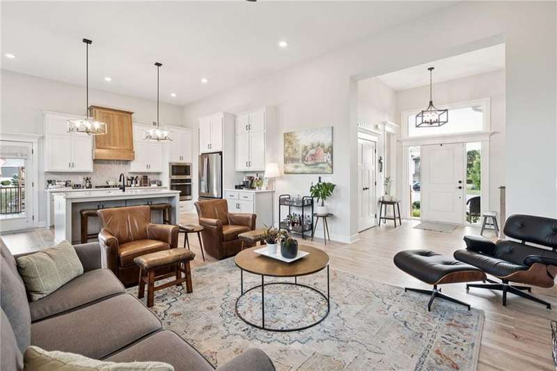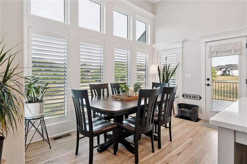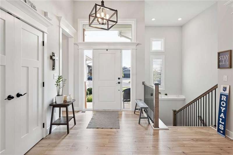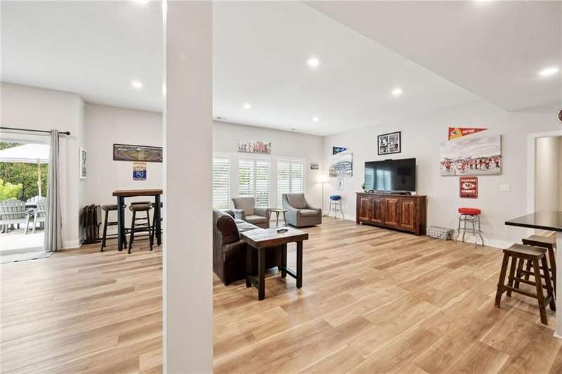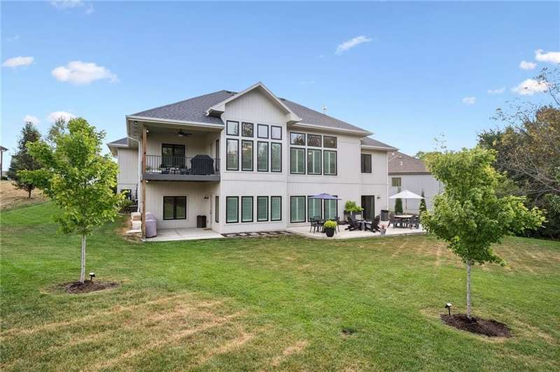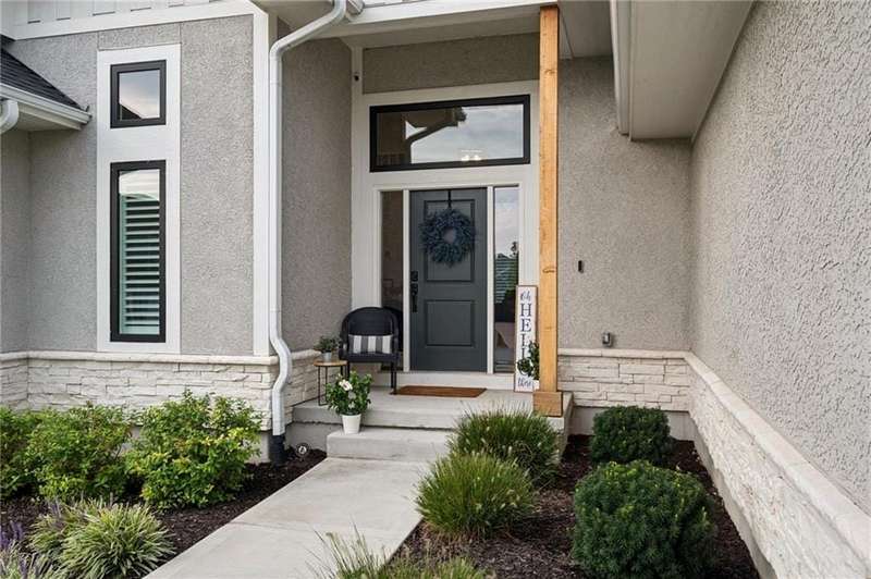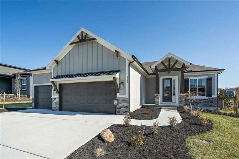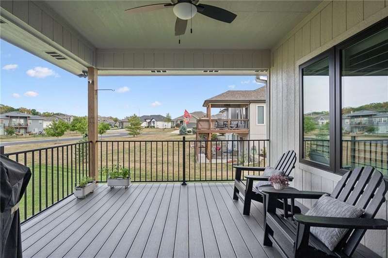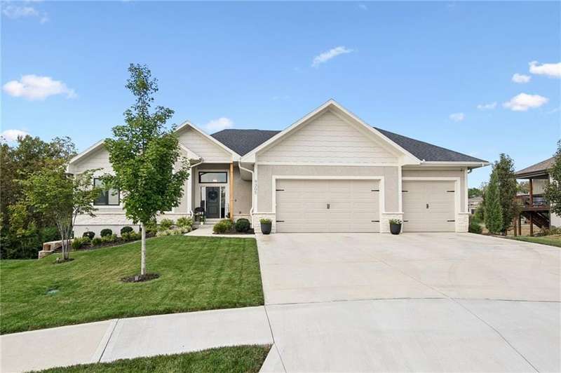 Amazing opportunity in the Estates at Chapman Farms this nearly new home is situated on a culdesac lot, backs to trees, and shows like a Model, including many additions and upgrades! Stunning open floor plan - wall of windows, soaring ceilings and tons of light. Beautiful flooring throughout the main level living area & lower level, and professionally installed built-in Plantation type shutters in the entire home. Great Room has beautiful floor to ceiling stone fireplace with built-in shelving on each side. Kitchen features lots of cabinets, island, walk-in pantry, quartz countertops, stainless appliances, gas range, and eat-in area that walks out to a maintenance free covered deck with composite flooring and railing. Main level Master Suite has tray vaulted ceiling with fan, double vanities, beautiful shower, tile floors and large walk-in closet. There is a nice sized second bedroom on the main level on the opposite side of the home with a walk-in closet - perfect for a mother-in-law, child or an office. Walk-out lower level has large family room area, wet bar, two bedrooms, full bathroom, and huge storage room. The outdoor entertaining space is amazing level backyard, professionally finished huge patio with stamped concrete ribbon around the edge, beautiful landscaping around the home, and very private setting with wooded area, trees and no homes immediately behind. The sprinkler system keeps everything looking green. There is nothing that needs to be done to this home; it is better than new! Award winning Lees Summit schools and great location just off Colbern Road and 7 Highway.