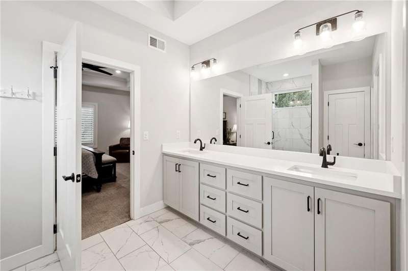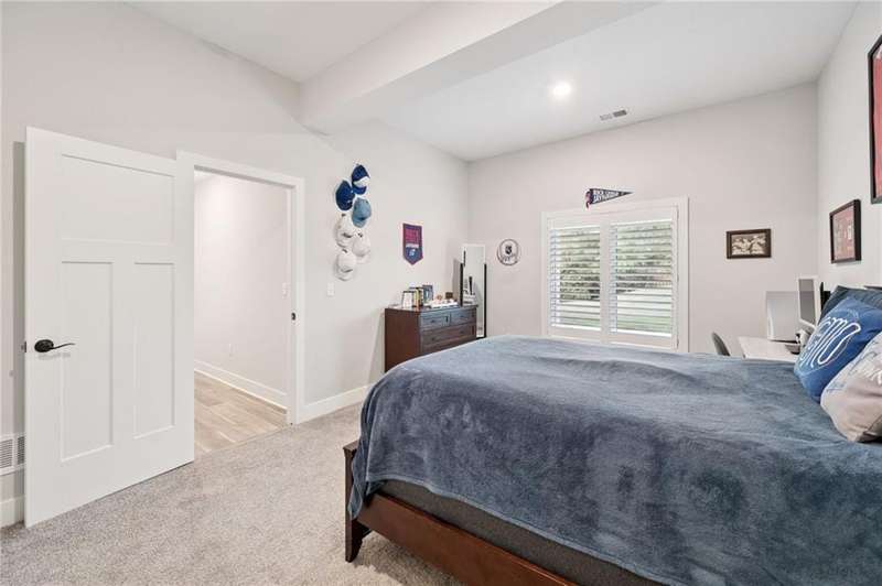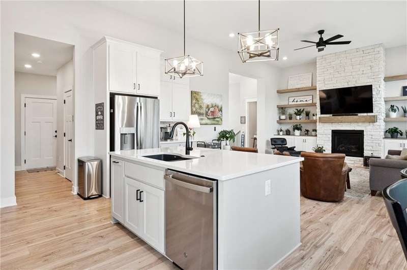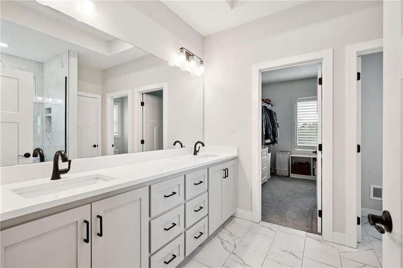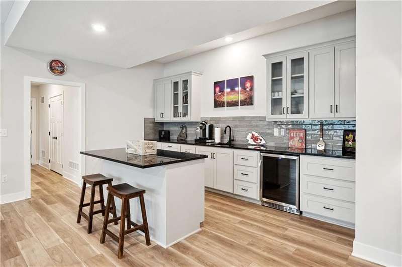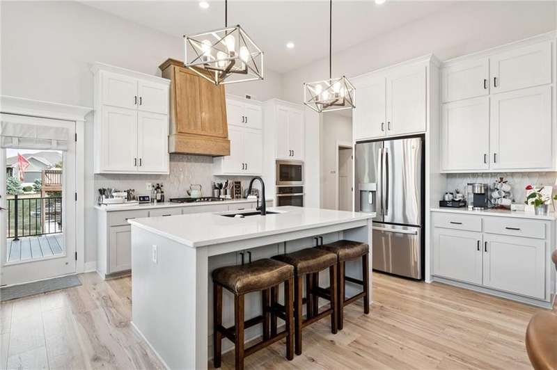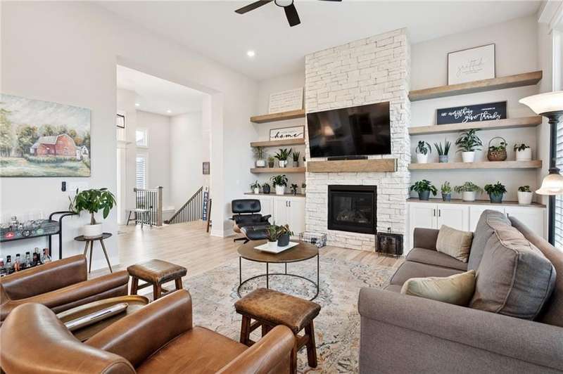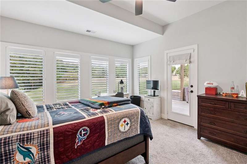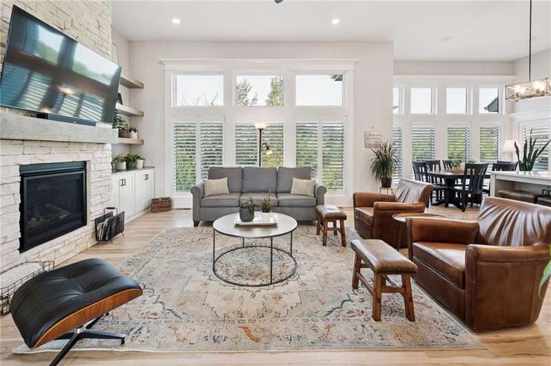 Amazing opportunity in the Estates at Chapman Farms this nearly new home is situated on a culdesac lot, backs to trees, and shows like a Model, including many additions and upgrades! Stunning open floor plan - wall of windows, soaring ceilings and tons of light. Beautiful flooring throughout the main level living area & lower level, and professionally installed built-in Plantation type shutters in the entire home. Great Room has beautiful floor to ceiling stone fireplace with built-in shelving on each side. Kitchen features lots of cabinets, island, walk-in pantry, quartz countertops, stainless appliances, gas range, and eat-in area that walks out to a maintenance free covered deck with composite flooring and railing. Main level Master Suite has tray vaulted ceiling with fan, double vanities, beautiful shower, tile floors and large walk-in closet. There is a nice sized second bedroom on the main level on the opposite side of the home with a walk-in closet - perfect for a mother-in-law, child or an office. Walk-out lower level has large family room area, wet bar, two bedrooms, full bathroom, and huge storage room. The outdoor entertaining space is amazing level backyard, professionally finished huge patio with stamped concrete ribbon around the edge, beautiful landscaping around the home, and very private setting with wooded area, trees and no homes immediately behind. The sprinkler system keeps everything looking green. There is nothing that needs to be done to this home; it is better than new! Award winning Lees Summit schools and great location just off Colbern Road and 7 Highway.