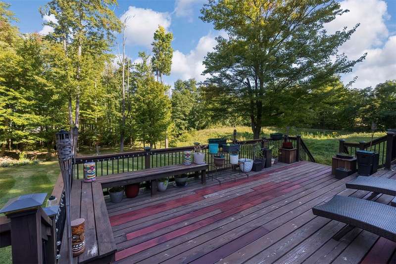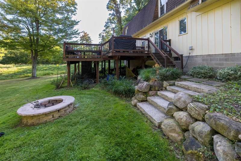 You're going to love everything this great Fairview home has to offer! Nice floorplan with generous room sizes throughout. On the first floor you'll find a wide foyer, living room and family room with fireplace, laundry, updated half bath, eat in kitchen with pantry and a formal dining room. Four large bedrooms upstairs with a full bath with skylight and a huge primary bedroom suite featuring a walk in closet and updated bath with a modern tiled shower. The lower level is finished with space to play or relax in a game room with bar or another family room. Still not enough space? Go outside through the kitchen or family room patio doors and enjoy the large 30x20 deck overlooking your 1+ acre lot with fire pit and wooded backdrop.