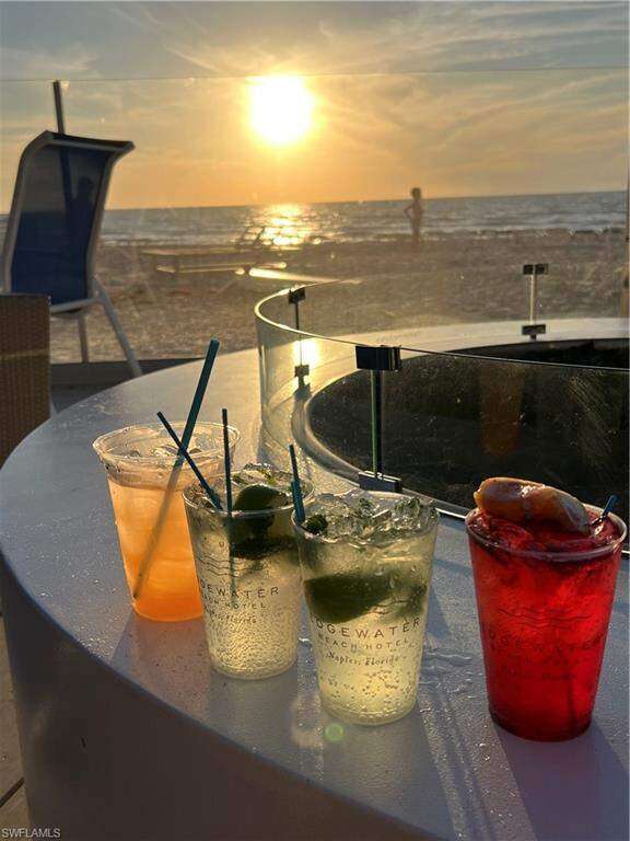 This lovely Gulf-front residence on Naples' beloved Miracle Mile is the kind of place where the sound of waves instantly makes you breathe a little deeper. Blending "Old Florida" charm with thoughtful updates, it's a true beachside retreat, just a short stroll to the soon-to-arrive Four Seasons. Space is utilized brilliantly with an open floor plan, large granite kitchen island, seating area replacing past walls, and matching built-in cabinets with a comfortable home office desk in an adjacent corner. Renovation of the primary bathroom was just completed, offering new walk-in shower and quartz countertops. The Diplomat is a friendly low-density building with an on-site manager, located directly beside the Edgewater Hotel. Residents love to walk over to the Edgewater for a cocktail and a bite to eat, or use it for overflow space when family and friends are visiting. Come be part of this amazing community and join them for Set at the Dip - Sunset at the Diplomat.