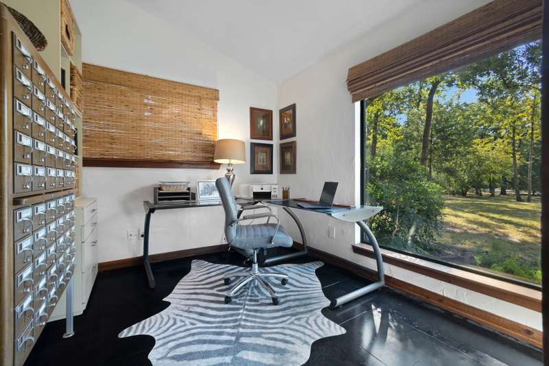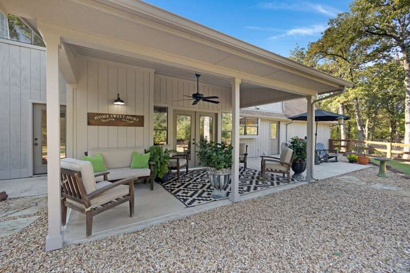 **Multiple Offers! Highest & Best Deadline is Tuesday, Nov. 4th at Midnight!** Hard To Find...Modern Cabin In The Woods!! Heavily treed lot on 1.4 acres in the highly sought-after Oak Bend neighborhood in north Denton (where homes don't often go on the market). Conveniently located just outside of city limits, so no city taxes. This beautifully decorated and designed home has four bedrooms, 2.5 baths, 2 dining rooms, plus an office. The living and formal dining room features a stone fireplace. The breakfast room with custom built-ins currently makes a great second living space. The large, impressive windows throughout the entire home let in natural light and give picturesque views of the surrounding beauty. The primary suite, with a recently renovated ensuite bath, has its own access to a small patio to lounge and enjoy your morning coffee. The upstairs has three large bedrooms with walk-in closets and a full bath with a shower-tub combo. One of the bedrooms is currently a game room or art room and has access to the floored attic space great for storage. The most prized feature of the home is the spacious covered back patio, perfect for enjoying the peace and tranquility of this amazing property! 2 car garage with huge walk-in closet the length of the garage. Carpet replaced throughout (Oct. 2025). See complete list of updates in Transaction Desk. *No HOA, but all residents are part of the Oak Bend Water Supply Corp.