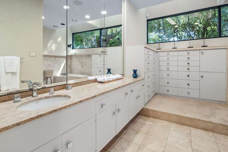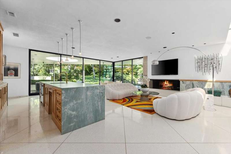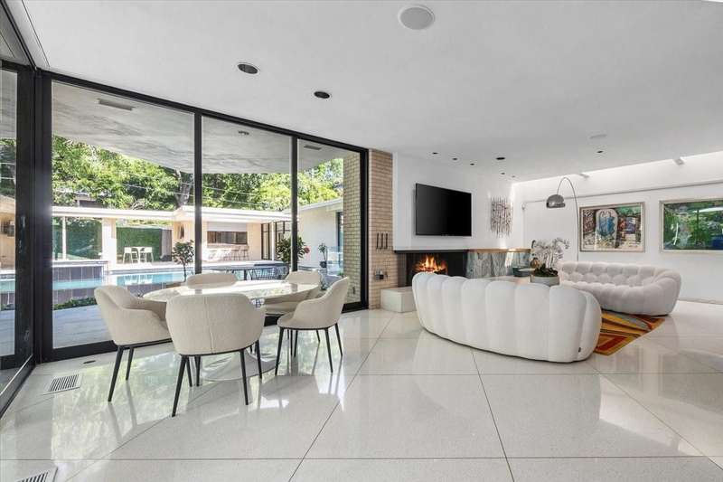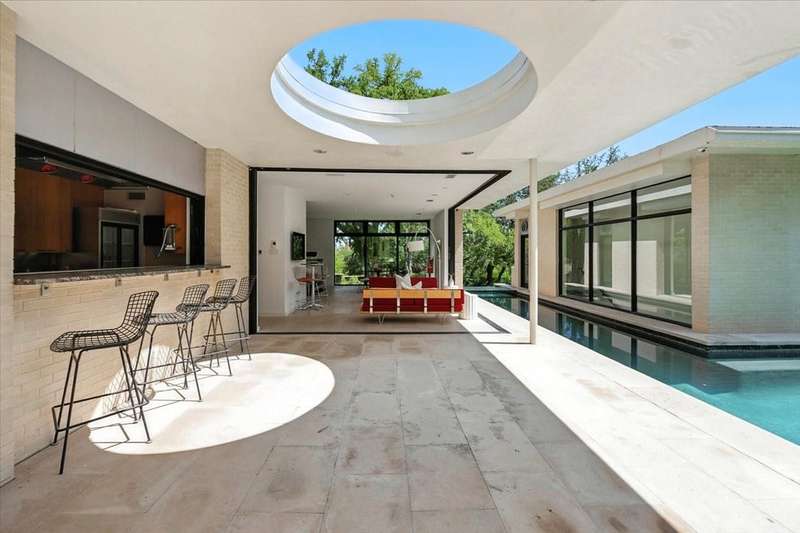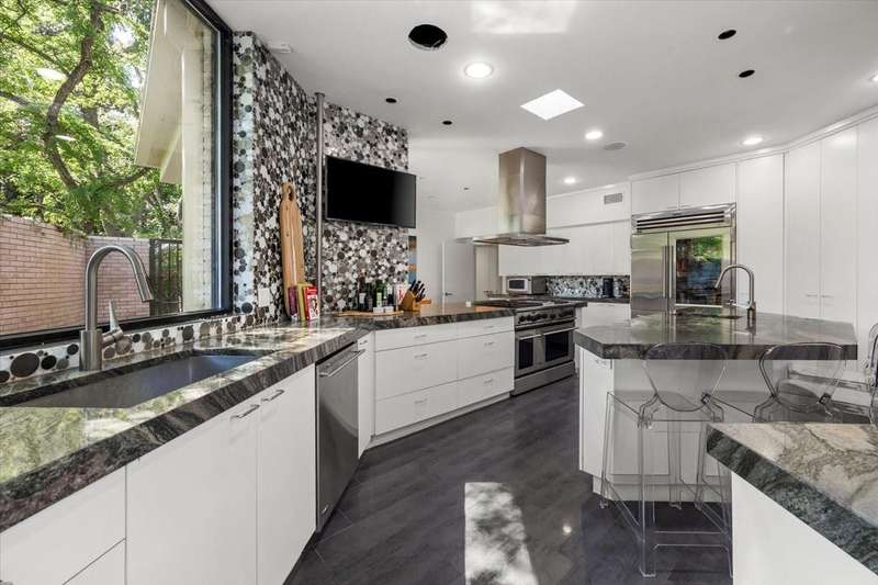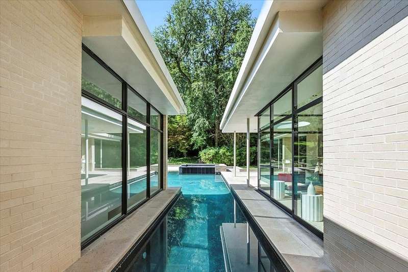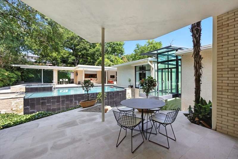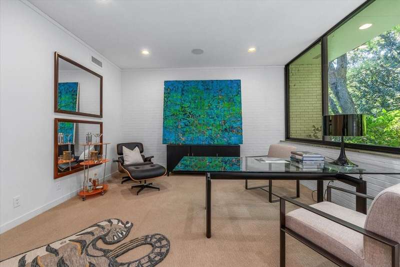 Step into an architectural masterpiece in one of Fort Worths most coveted neighborhoods. This estate is more than a homeits a statement. Featuring 5 bedrooms, 7 full baths, 2 half baths, and garage space for 5 cars, it was designed for those who demand extraordinary. Every square foot exudes sophistication: a private library, dedicated office, state-of-the-art theatre, wine cellar, and formal and casual dining spacesall seamlessly connected to expansive indoor and outdoor living areas. The homes showpiece amenities extend to a 1,000+ sq. ft. air-conditioned cabana with a full kitchen, gym, living space, and bathresort-style living year-round. Set on 1.2 acres of lush grounds, the residence blends iconic 1957 Jack Schutts mid-century design with a striking 5,000 sq. ft. modern addition. Inside, terrazzo floors flow through dramatic spaces: a dining room that frames a waterfall, a great room with fireplace and custom bar, and glass walls that vanish to reveal a terrace crowned with a circular oculus skylight. The chefs kitchen balances form and function, equipped with professional-grade appliances and a private fountain patio. The primary suite is a sanctuary of its ownlibrary, fireplace, and sweeping park-like views included. Outside, sleek glass bridges float above landscaped gardens and water features, while the pool design is nothing short of jaw-dropping, weaving between structures in a way that feels almost cinematic.This is not just real estateits an experience, designed for those who live without compromise.