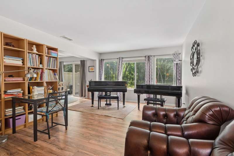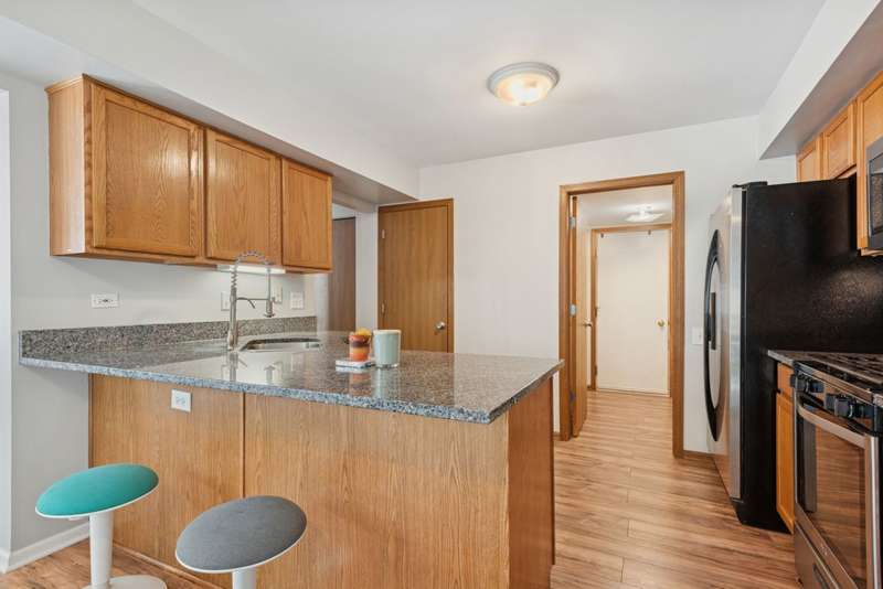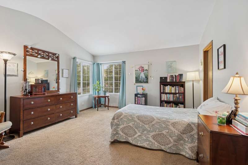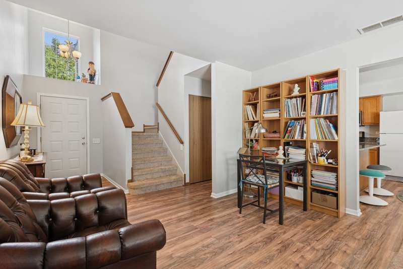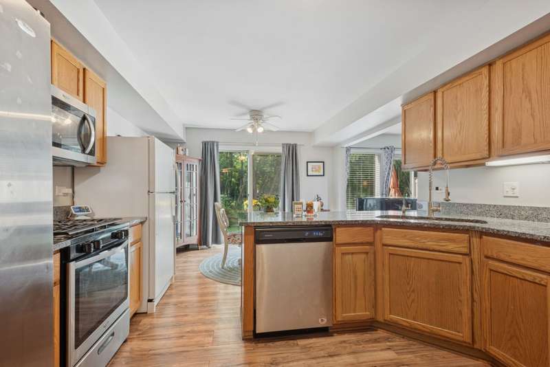 This true 3-bedroom, 2.5-bath townhome offers the perfect blend of comfort, style, and location-nestled in the sought-after Sherwood Forest neighborhood and backing directly to peaceful greenspace for added privacy. Step inside to a bright and inviting two-story entry that fills the main level with natural light. The spacious living room features three large windows with scenic backyard views and flows seamlessly into the eat-in kitchen. The kitchen is well-appointed with granite countertops, a pantry, breakfast bar, and dining area that opens through sliding glass doors to the private patio-perfect for indoor-outdoor entertaining. Newer wood laminate flooring extends throughout the main level, including the convenient first-floor laundry room with access to the attached garage. Upstairs, the generous primary suite boasts a walk-in closet and private en-suite bath. Two additional large bedrooms share an updated hall bath complete with a new vanity and luxury vinyl plank flooring. Enjoy warm weather on the secluded patio overlooking a nicely sized yard lined with mature trees for a serene backdrop. Recent updates include newer siding (4 years) and roof (7 years) for added peace of mind. Ideally located near shopping, dining, parks, schools, and major routes including Rt 59, 19, 20, and I-90 for easy commuting. Don't miss this move-in-ready home in a premium location!