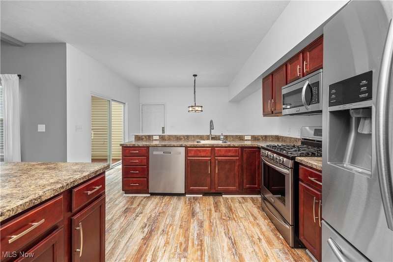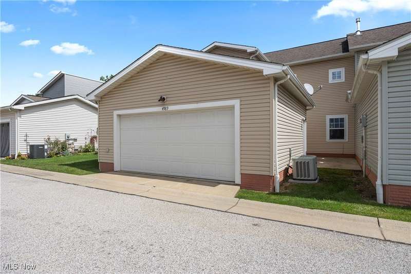 Welcome to 4989 Greenflower St in North Olmsted! This move-in ready townhome condo offers low-maintenance living with 2 bedrooms, 2.5 baths, and a spacious, functional layout. The main level features a bright entryway with coat closet, an oversized great room with soaring two-story ceiling, a nicely designed kitchen with all appliances included, dining area with patio access, half bath, laundry room/utility room with washer and dryer. Upstairs you'll find a versatile loft, the owner's suite with private bath, a second bedroom, and another full bath. Enjoy outdoor space on the front porch or private patio, plus a 2-car garage equipped with 220 service and a heater that stays. Association fees cover exterior maintenance, landscaping, mowing, edging, and snow removal, making daily life simple and convenient. Updates include vinyl plank flooring on the main level (2017), carpet upstairs and in the great room (2020), updated half bath (2020), storm door (2022), new blinds upstairs (2024), washer and dryer (2022), and dishwasher (2024). For added peace of mind, the seller is including a one-year home warranty through CINCH. Conveniently located near highways, the turnpike, shopping, dining, metro parks, and just 20 minutes to downtown Cleveland. Don't miss this opportunity for comfort and convenience in a prime location!