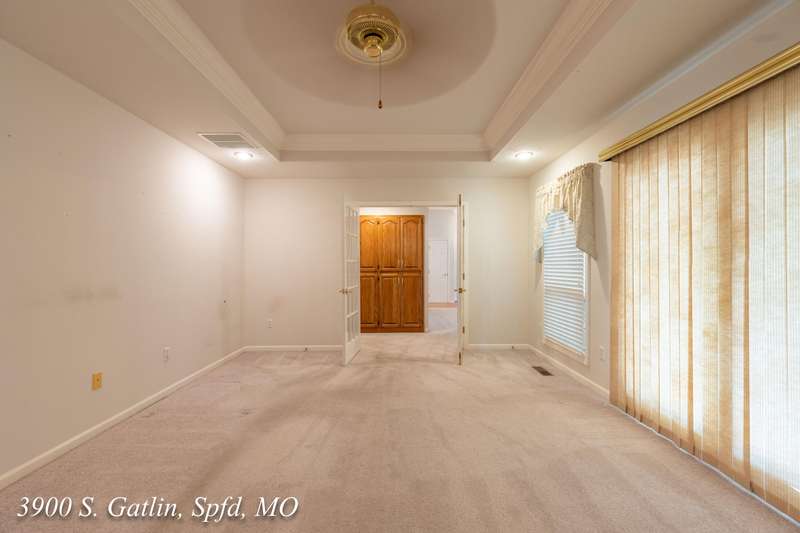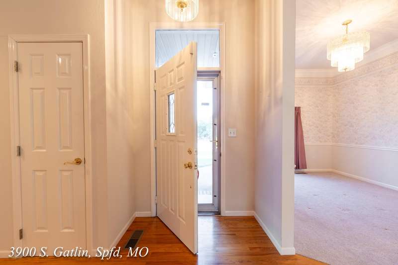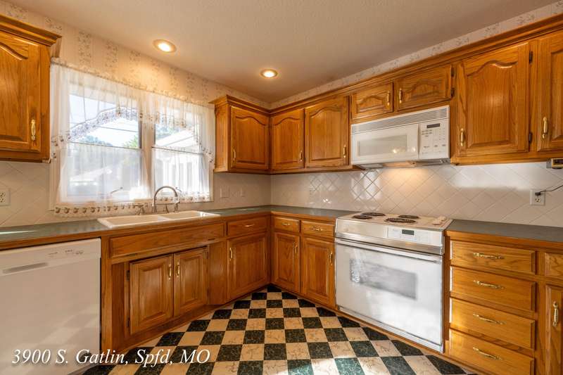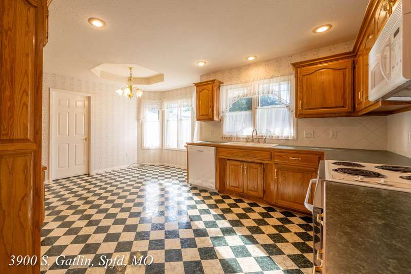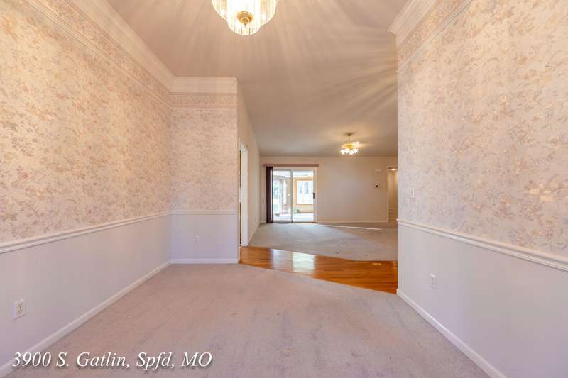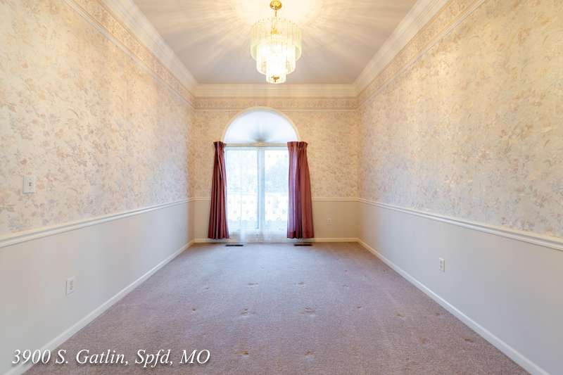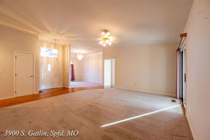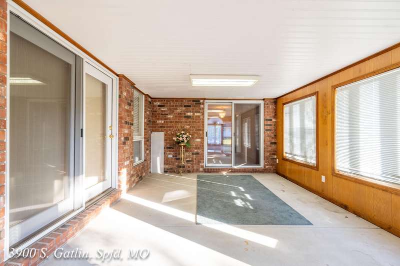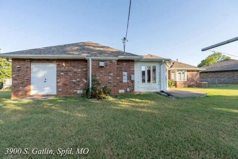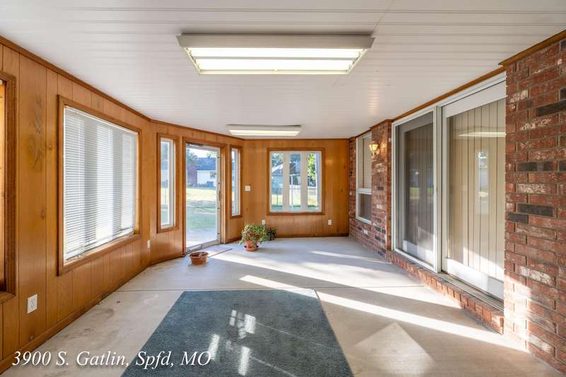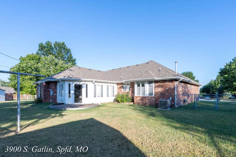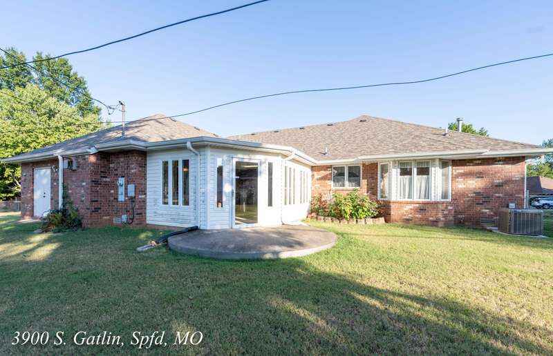 3900 S Gatlin Ct, Springfield, MO 65807. Situated on a cul-de-sac. Discover this charming, ALL BRICK home with 3- bed, 2-bath offering nearly 2140 SF of thoughtfully designed living space. The door opens into a spacious formal living room and the formal dining has impressive, wide crown molding. French Doors open into the family/hearth room with gas fireplace, a perfect area for gathering or relaxation. Enjoy an eat-in kitchen ideal for daily meals or coffee and conversation. Major system upgrades include a new roof (2021) and energy-efficient HVAC system (2022) ensuring comfort and confidence for years to come. Dishwasher was replaced in 2023. This wonderful home also has central vac system. The master bath has a walk-in shower, walk-in closet & jetted tub. The sun room is 247 additional sq ft. Situated on a .27 acre lot with fully fenced backyard offering both privacy and space for outdoor enjoyment. Attached 2-car garage, back yard shed and an exterior access on the back of the home offer ample storage. Located within Kickapoo Prairie subdivision, this home is just ,4 miles from Kickapoo High School and approximately 1 mile from Cox South and the Medical Mile, offering exceptional convenience for families and professionals.