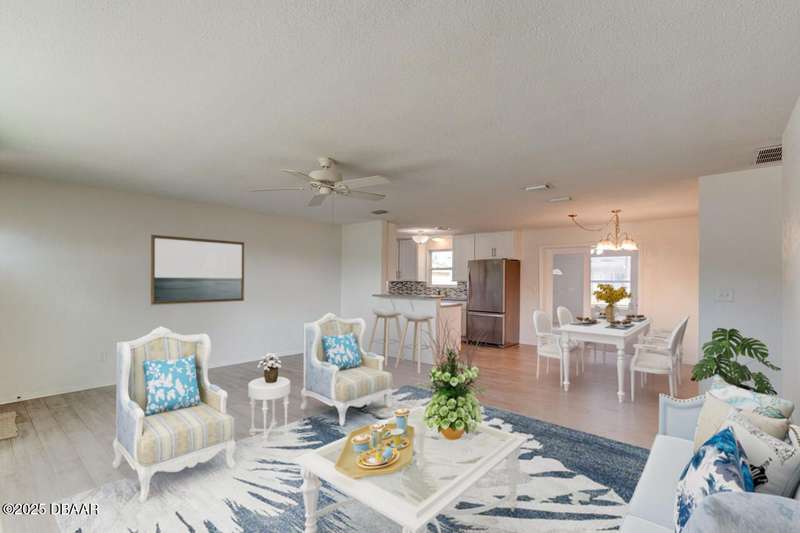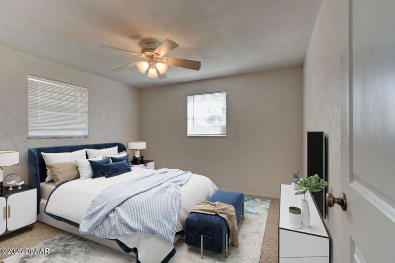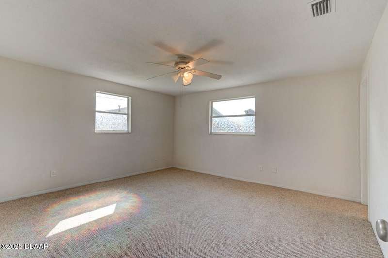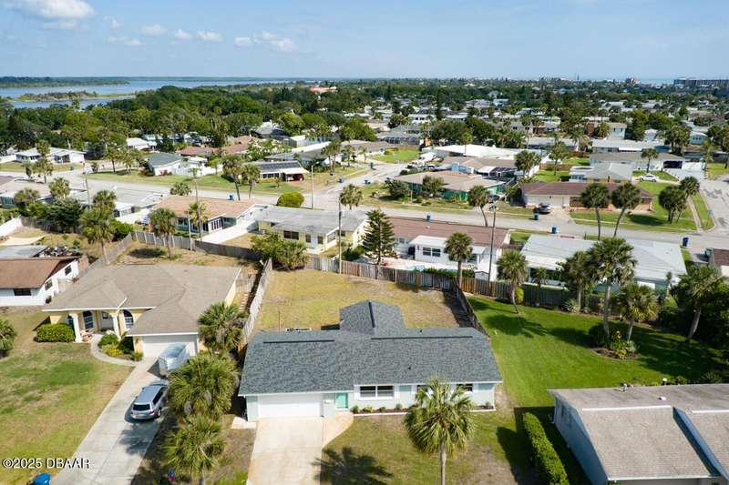 Welcome to your Beautiful Beachside Retreat! This stunning property is perfectly situated between the sparkling Atlantic Ocean and the tranquil Halifax River offering the best of both worlds with beach access at the end of the street. Boasting 3 bedrooms and 2 full bathrooms and an inside laundry room, this home is perfect for those looking for a peaceful retreat.The flexible layout includes a third bedroom that could also be used as a family room or game room. The oversized lot provides a great backyard with plenty of room for a pool, making it ideal for outdoor entertaining and relaxation.Updates include 2023 ROOF, 2022 HVAC, 2018 WATER HEATER, NEW FLOORING, NEW CARPET, NEW INSIDE PAINT, NEW LIGHT FIXTURES, NEW CEILING FANS, NEW DUCT WORK, NEW ATTIC INSULATION and a fantastic kitchen with soft close cabinets and drawers. Located next to the beautiful Bicentennial Park with Basketball and Racquetball courts, Dog Park and many other amenities.