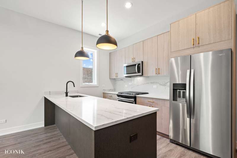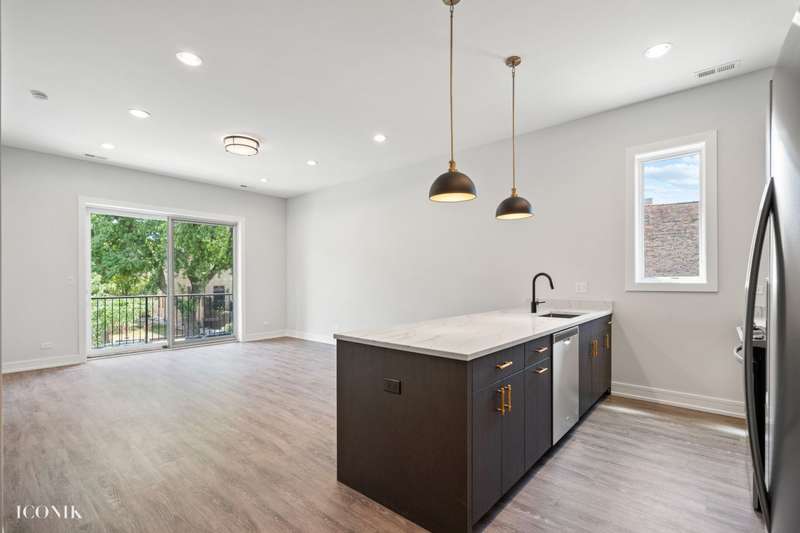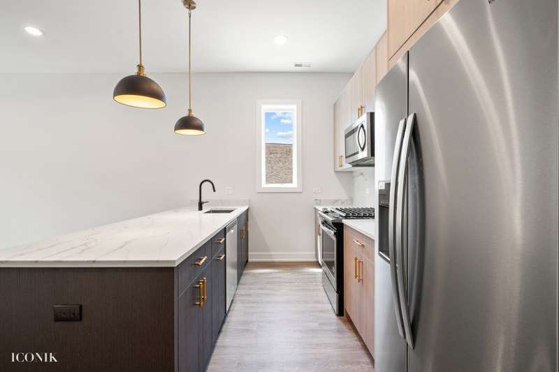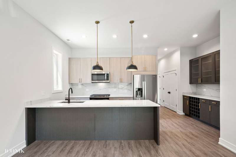 Welcome to the recent new construction building! This 8 unit building features oversized 3 bedroom, 2 bathroom floor plans. Endless designer finishes throughout. Extra wide apartments offering a built in custom dry bar with wine fridge. Escape outdoors on your private deck off the living room! Three generous size bedrooms feature soft carpeting + large closets. Window treatments throughout! Tons of storage throughout. Washer and dryer in unit. Garage parking is 200. AVAILABLE today.