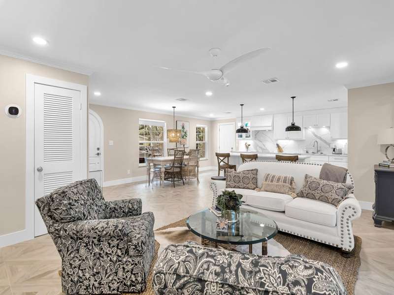 Located in the heart of Central Beach, this beautifully renovated and designer-decorated home offers the perfect blend of style and convenience. Situated on a treed lot, the CBS-constructed home features an open floor plan, ideal for modern living. Just steps from Riverside Park with tennis courts and boat ramp. Within walking distance to the beach, shops, restaurants, Riverside Theatre, and the Vero Beach Museum. Don't miss this rare opportunity to enjoy the best of beachside living in a prime location! New roof in 2024. Approx. sizes/subject to error.