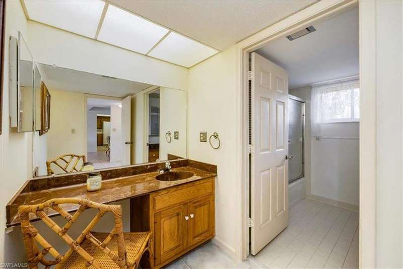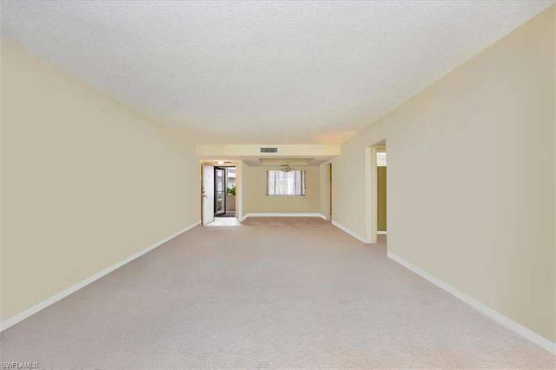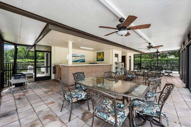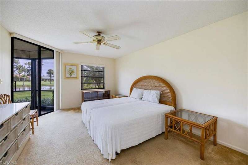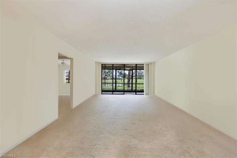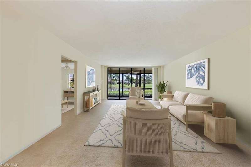 Discover Florida living at its finest in this spacious 1st-floor, 2-bedroom, 2-bath condo in the heart of Lely Country Club! Spanning 1,390 sq ft, this bright and airy residence boasts stunning golf course and pond views from nearly every room, framed by lush banyan trees and natural wildlife. The open split floor plan features a large living room with sliders to a private screened lanai, a separate dining area, and an eat-in kitchen. Convenience abounds with an in-unit washer and dryer, a newer A/C (2021), assigned covered carport, ample guest parking, and an extra-large storage unit. New roofs are scheduled for installation next year. Nestled in a beautifully landscaped community with just 36 units, residents enjoy exclusive amenities, including a private pool and spa, a screened social area with restrooms, and elevator access. Additional perks include a mailbox near the elevator and a spacious storage unit. Perfectly located minutes from Naples' pristine beaches, vibrant 5th Avenue, top-tier restaurants, and shopping, this condo offers unmatched convenience and coastal charm. Ideal for buyers or investors, this original condo is a blank canvas ready to be transformed into a modern dream home. Virtually staged photos provide inspiration for its endless potential. One of the best values in Lely Country Club, this move-in-ready gem delivers the Naples lifestyle you've been dreaming of.