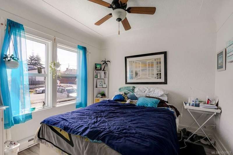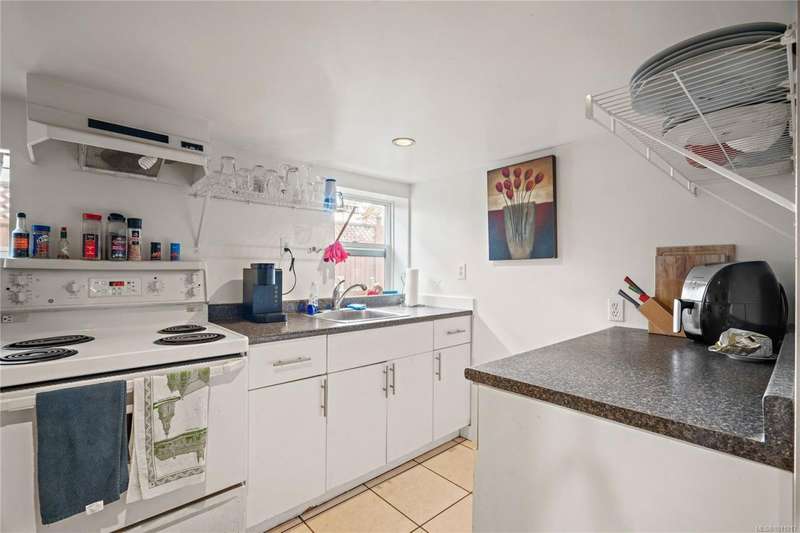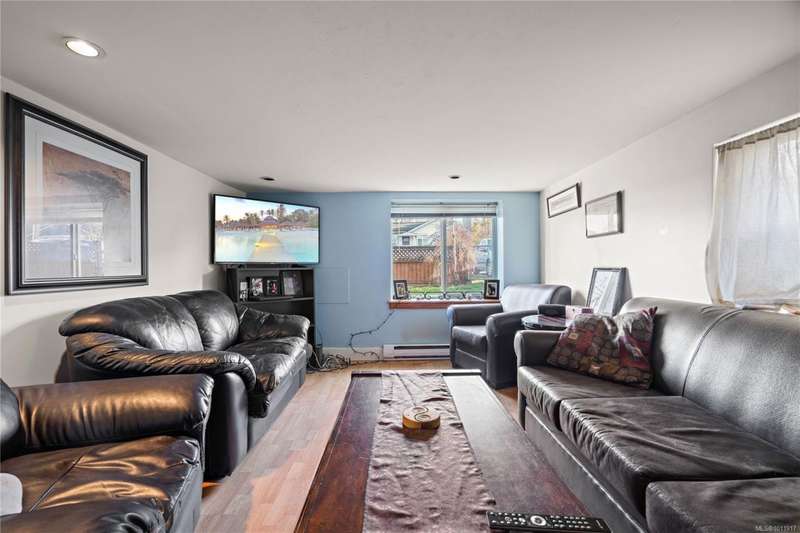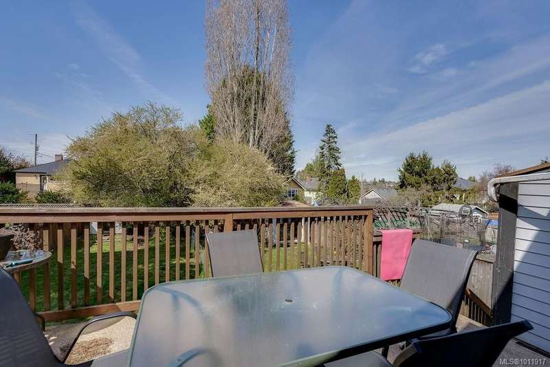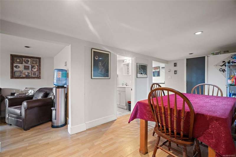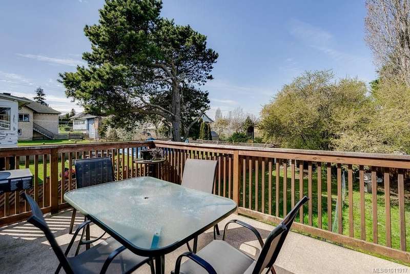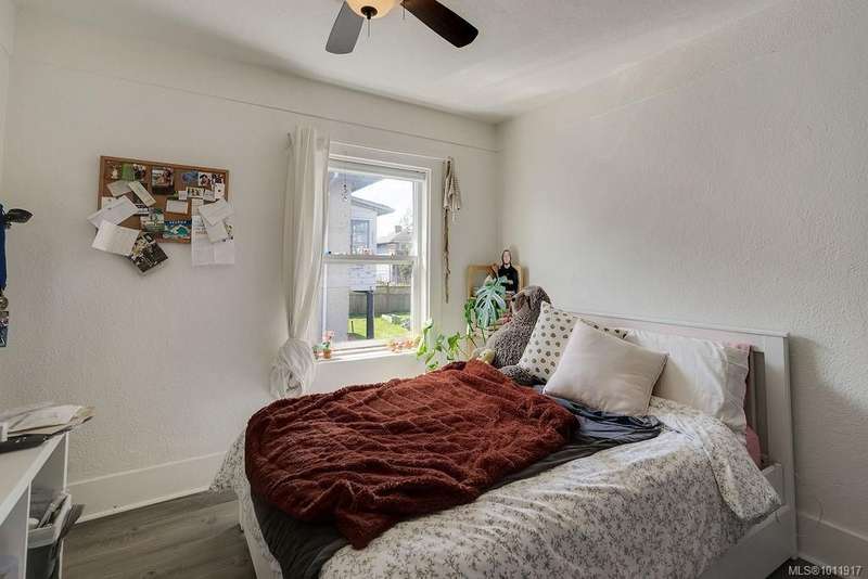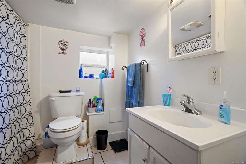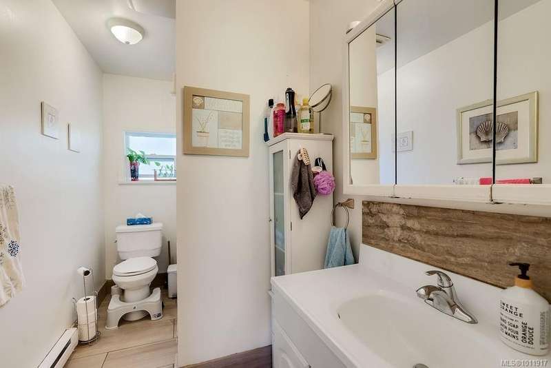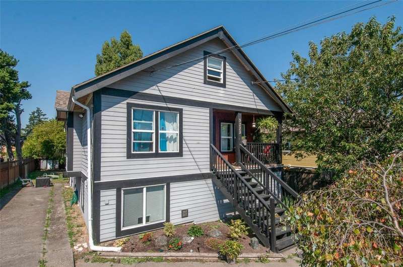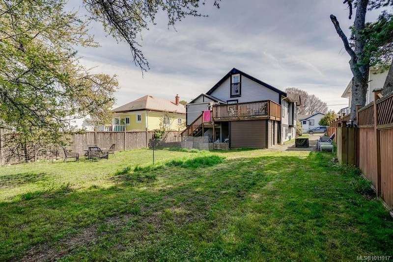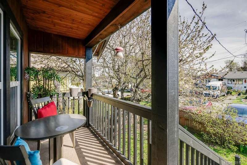 Situated on a quiet, family-friendly street in Tillicum, this character home offers both charm and potential. Zoned RS-6, it allows for garden suite/carriage house (buyer to verify), with an extra-long driveway providing ample parking for vehicles, boat, or RV and easy access to the back. The main level features coved ceilings, a bright living room, updated kitchen with eating area, 3 bedrooms, full bath, laundry, and a southwest-facing deck for BBQs. Upstairs is a 4th bedroom, two closets, and flex space for office or hobbies. Enjoy morning tea on the private front porch, while the fully fenced yard is perfect for kids, pets, or gardening. The 2-bed suite with private entrance also has its own laundry, ideal for extended family or income. Recent updates include new flooring, front stairs, fresh interior paint, roof, siding, vinyl windows, and lifetime water tank. Close to transit, shopping, medical, and Tillicum Mall, this versatile home is move-in ready with exciting possibilities.