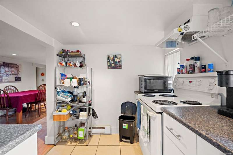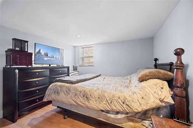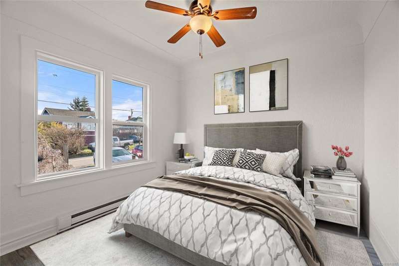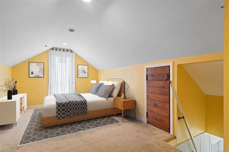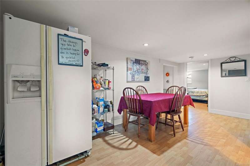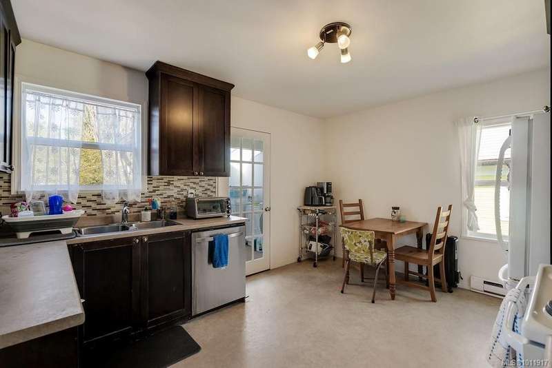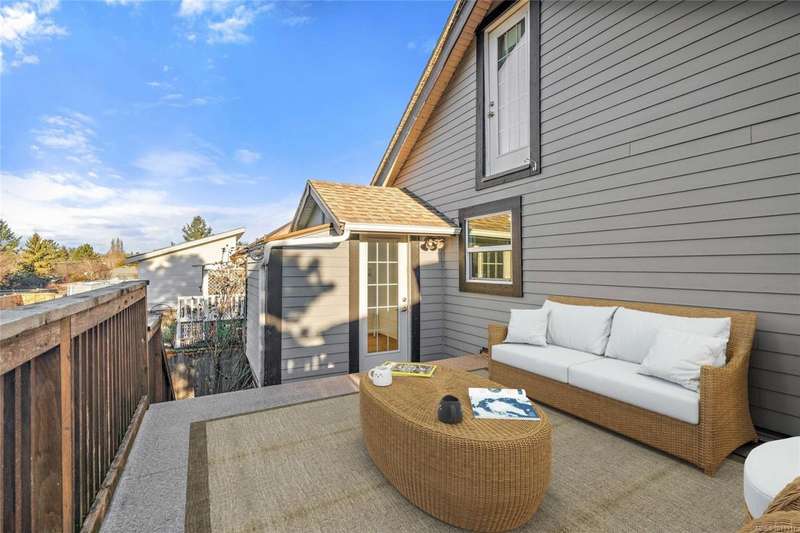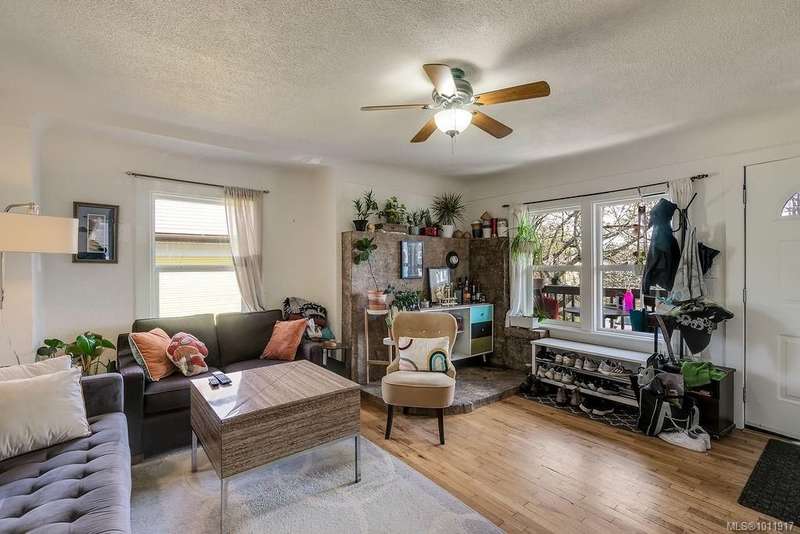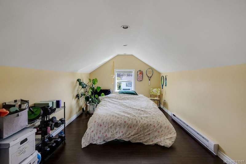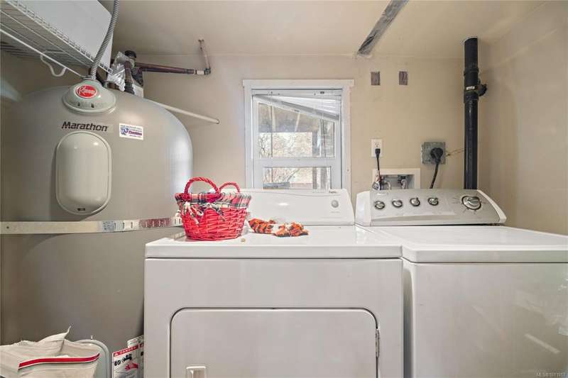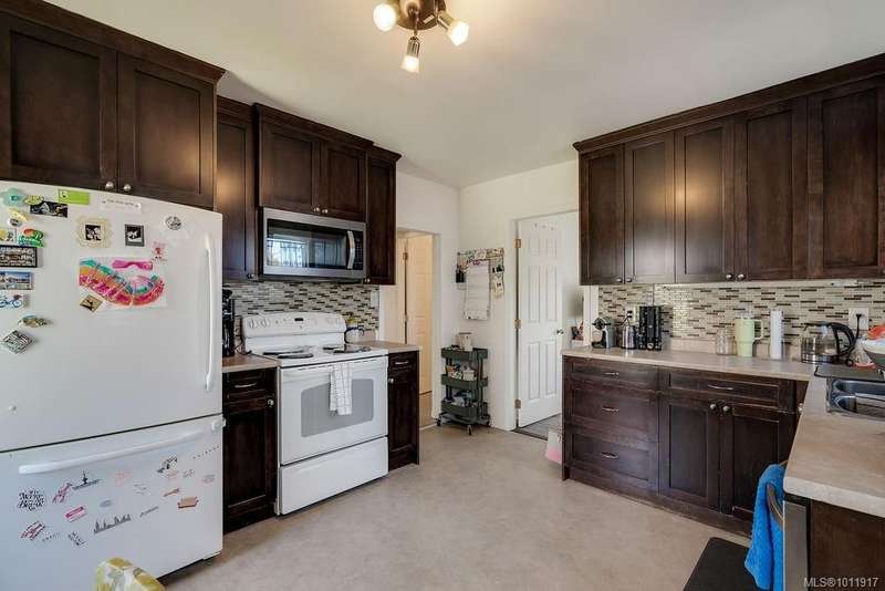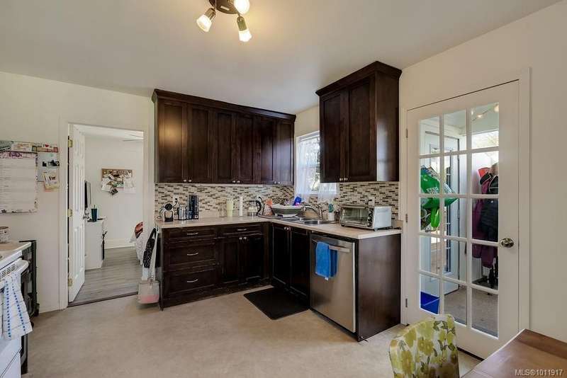 Situated on a quiet, family-friendly street in Tillicum, this character home offers both charm and potential. Zoned RS-6, it allows for garden suite/carriage house (buyer to verify), with an extra-long driveway providing ample parking for vehicles, boat, or RV and easy access to the back. The main level features coved ceilings, a bright living room, updated kitchen with eating area, 3 bedrooms, full bath, laundry, and a southwest-facing deck for BBQs. Upstairs is a 4th bedroom, two closets, and flex space for office or hobbies. Enjoy morning tea on the private front porch, while the fully fenced yard is perfect for kids, pets, or gardening. The 2-bed suite with private entrance also has its own laundry, ideal for extended family or income. Recent updates include new flooring, front stairs, fresh interior paint, roof, siding, vinyl windows, and lifetime water tank. Close to transit, shopping, medical, and Tillicum Mall, this versatile home is move-in ready with exciting possibilities.