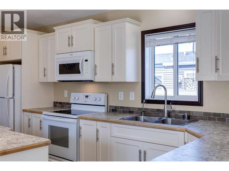 Offered for sale for the first time and ready for quick possession, this well-equipped modular home in a family- and pet-friendly park features a spacious kitchen with abundant cupboards, a walk-in pantry, and a sit-up island. It includes a laundry room with a sink and washer/dryer, roughed-in central vacuum, and a low-maintenance composite deck with aluminum rails. The primary bedroom has a walk-in closet and en suite bath, while two additional bedrooms share a full guest bath. Close to UBCO. No muss no fuss, ready to move in, book your showing today. (id:58403)
