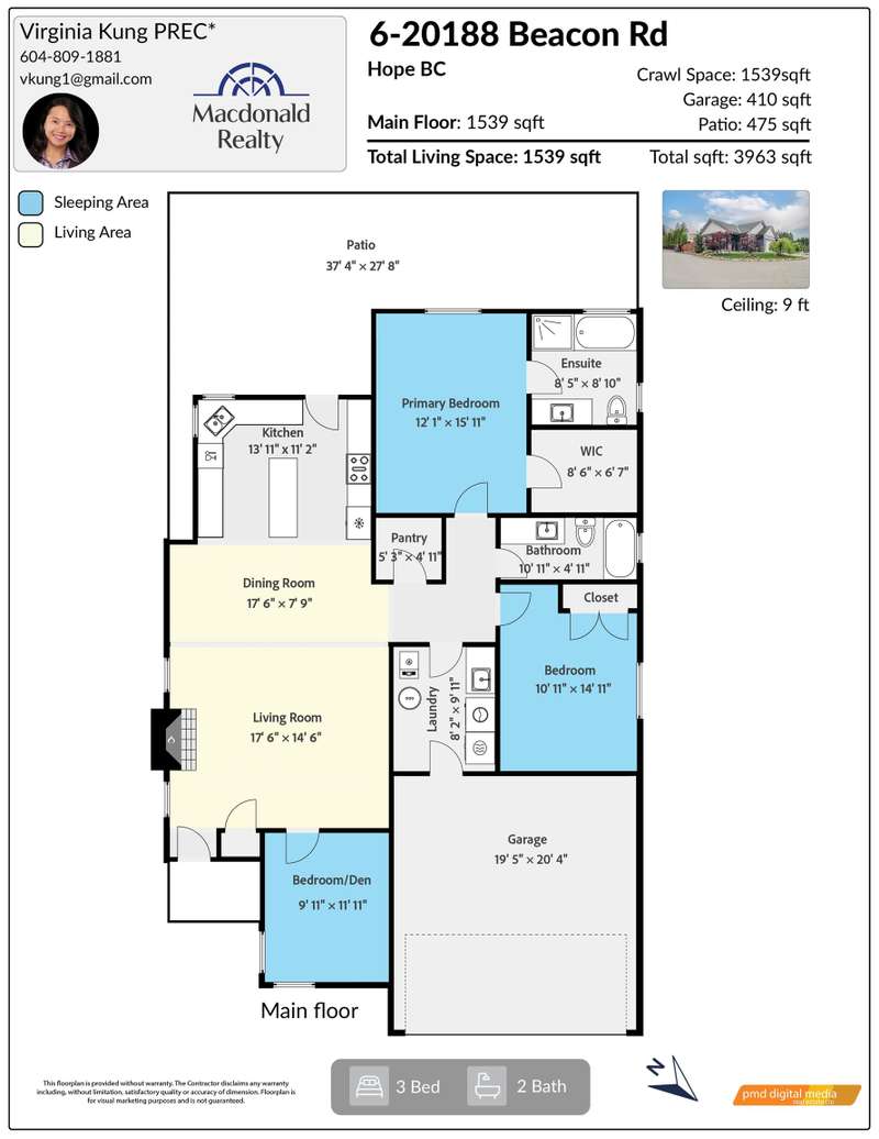 Large Gorgeous Rancher Situated on Beautifully Landscaped Corner End Unit w/280 Degree of Panoramic Picturesque Mountain Views from Every Room. Largest Corner Lot in this Gated Complex. South, East & West Facing w/Built-in A/C & Backup Generator. Entertainer’s Delight, Great Open Concept, Stunning Floor to Ceiling Stone Accent Gas Fireplace, Amazing Chef’s Kitchen w/Mahogany Color Tall Cabinets, Total 44 Cabinets. Huge 7’ft Long Ctre Island w/Quartz Countertops, Gas Cook Range, Quality S.S. Appls + a Walkin Pantry. 9 ft High Ceiling, Crown Mouldings & Brazilian Color Laminate Thru-Out. Large Master w/Walkin Clst, Ensuite w/Deep Soaker Tub & Sep Shower, 2 more Good Size Bdrms. Fully Fenced Backyd w/Beautiful Mountain View & Meticulously Landscaped Garden. 4’ft Crawl Space Under Entire House