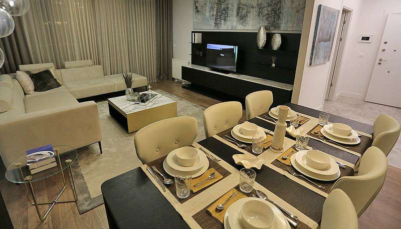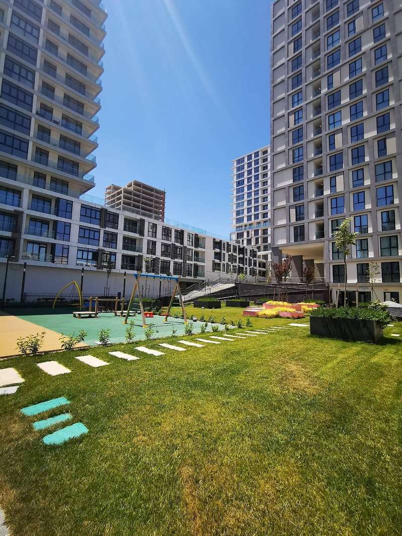 The project is situated on 350.000 m² total plots and features 3 phases. Here, there are 2500 apartments and 100 shops. The project offers 24/7 security service, a large communal garden, restaurants, cafes, bicycle trails, a shopping section with shops and markets, pilates center, sauna, SPA, Turkish bath, fitness center, indoor and outdoor swimming pools; basketball, football, and tennis courts; indoor and outdoor parking, generator, lifts, game areas, and playgrounds.