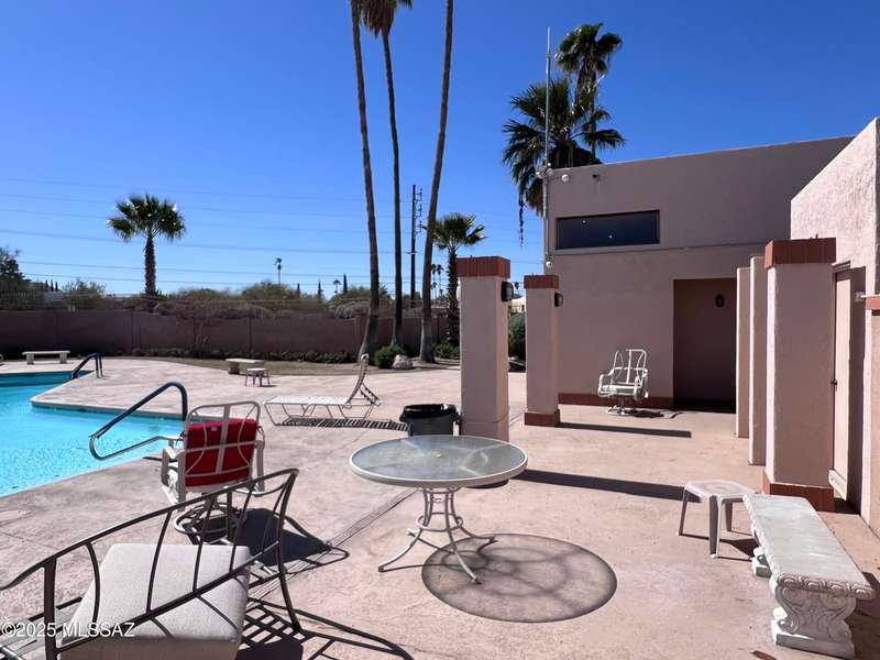 Interior lot, secure, common area on two sides, open land and Pima county land to the back. New stainless appliances, very clean, move in ready. Never used. New AC June 2025-17th, Straight line shot to I-10, local services and Hospital. Very close to both Pima and the U of A. Two front entries, Dinning and family room, new flooring in kitchen area. Community pool recreation area and spa. Home is raised slightly above Garage-attached. Subdivision has two entries, take the western most entry. Walk and cross bridge to pool. Community parking across the street and at various locations with in the subdivision.