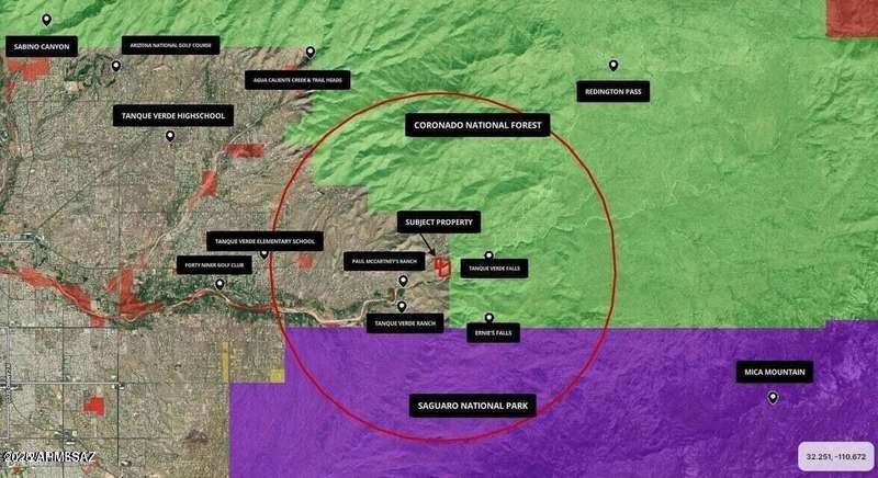 NO HOA! Stunning 6.83 acre estate in Tanque Verde, surrounded by natural beauty and offering endless possibilities. Near the Coronado National Forest and located just a half mile from Paul McCartney's Tanque Verde Ranch, this property provides ultimate privacy and a serene desert setting with lush vegetation, towering saguaros, and breathtaking mountain views. Easy access, and ample space for horses or recreation, this rare gem is perfect for a private retreat or unique development opportunity. Explore this extraordinary property today. Motivated seller, bring all offers. Owner may carry