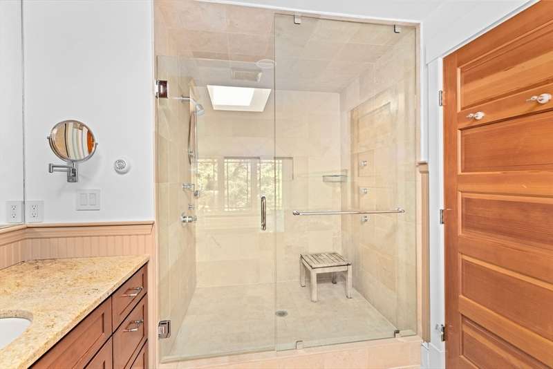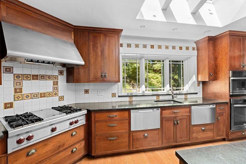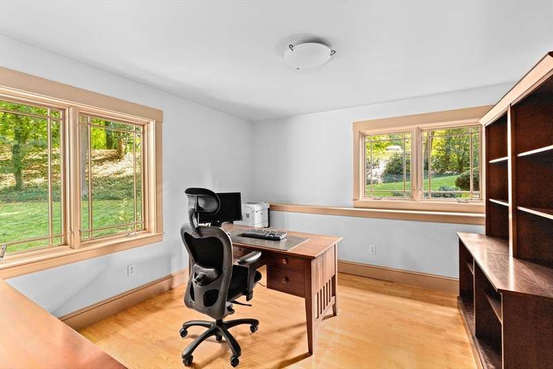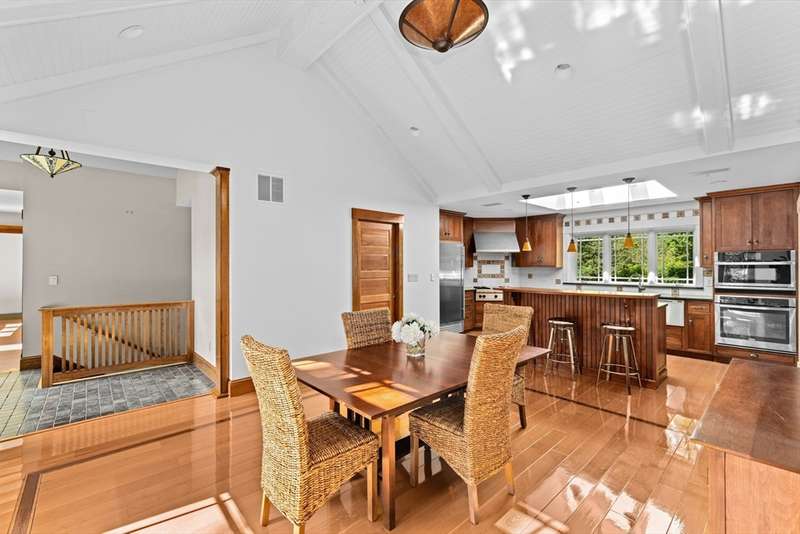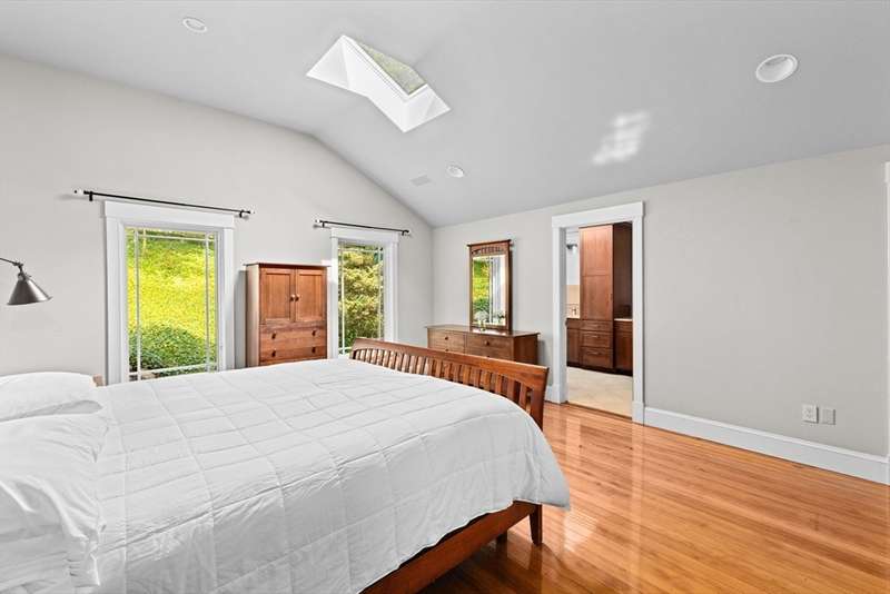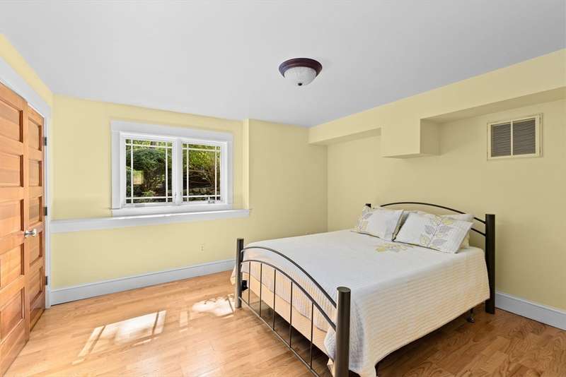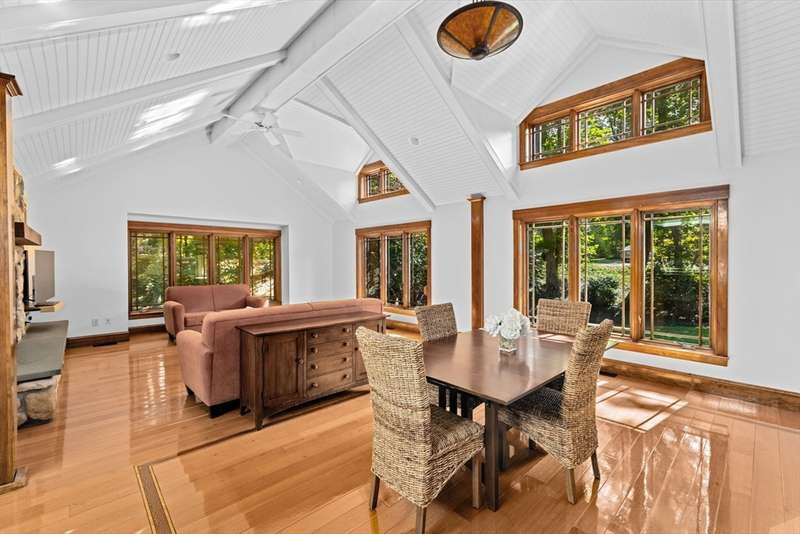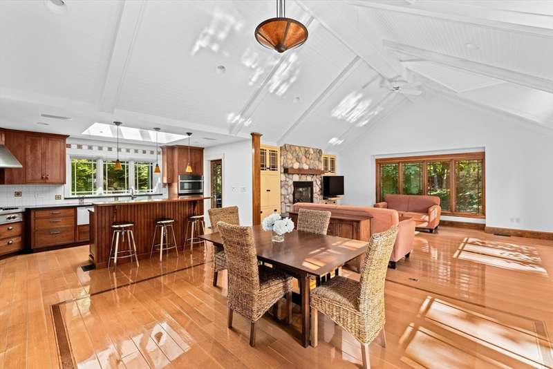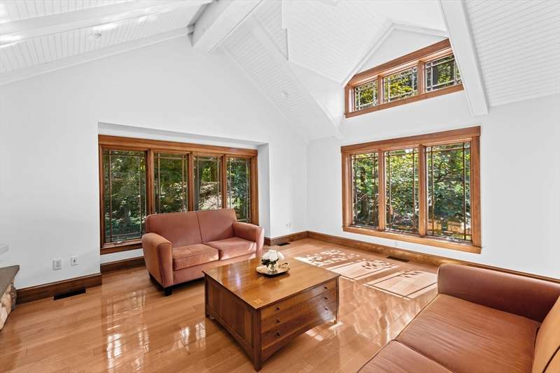 Nestled on an enclave of 4 homes in a sought after location between Cohasset Village and Sandy Beach, this lovely four-bedroom home combines Vermont-like charm with the ease of one story coastal living. The open floor plan features a chef s kitchen with walk-in pantry, a dining area, and a sunlit living room with soaring ceilings and a dramatic stone fireplace. The first-floor primary suite includes a spacious walk-in closet and full bath, while a second bedroom and bath open directly to the backyard. The walk-out lower level offers two additional bedrooms, a full bath, and a flexible living space. A screened-in porch with a gas fireplace overlooks the tranquil backyard, complete with a deck, waterfall feature, and a large side yard. With a one-car garage and an sought after location close to the village, beaches, and commuter rail to Boston, this home is a serene retreat in the heart of Cohasset.