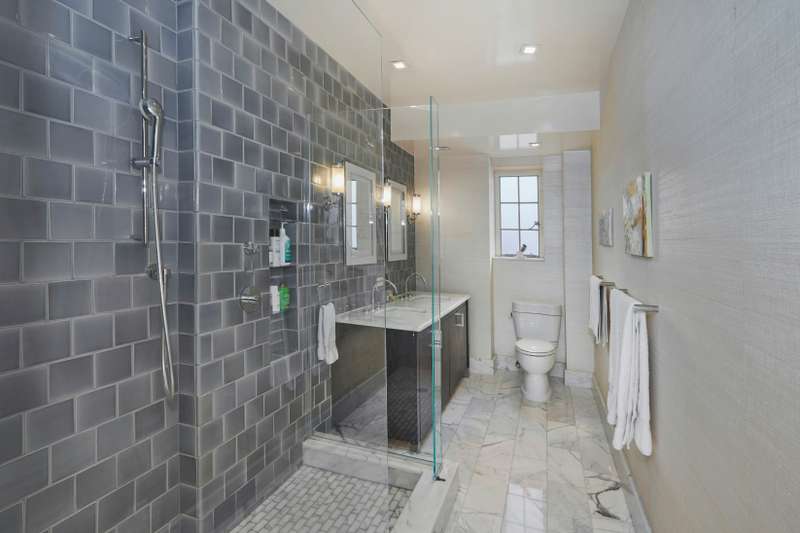 - Gracious primary suite featuring a windowed master bath with radiant heated marble floors, oversized shower, and double-sink vanity.