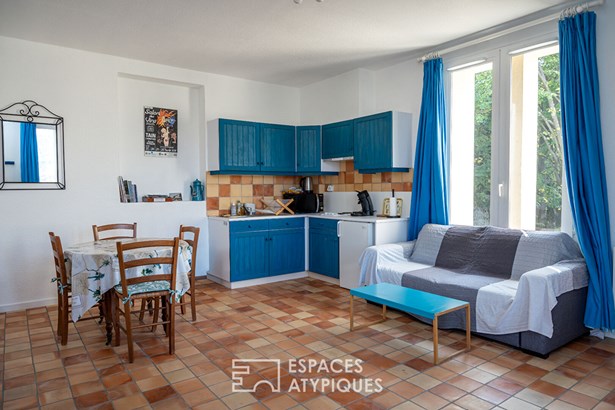 The swimming pool, perfectly integrated into its surroundings, invites you to relax in a bucolic setting. The Syrah vines bordering the terrace, the discreet petanque court and the carefully pruned park reinforce the elegant Mediterranean atmosphere of the place.
